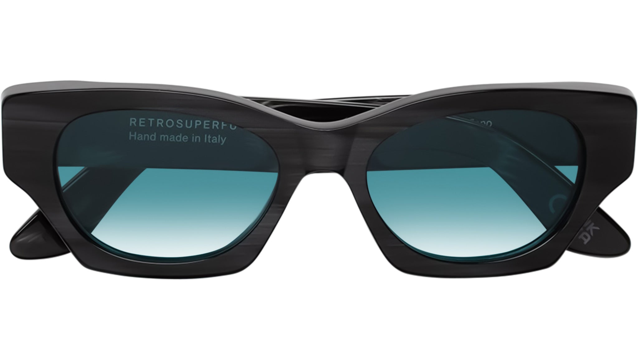 Tono definitely sets the tone, with its sturdy form which highlights its unique curves and cuts. The frame builds on strong classical foundations as it flirts with fashion, resulting in a unique and determined unisex silhouette. This version of the Tono comes in a rich and unique striated black acetate paired with cool blue lenses. Handcrafted in Italy. Sizes: R. Lens Width: 52 mm. Frame Front: Frame Side: 145 mm. Product Code Size R: 8FH.