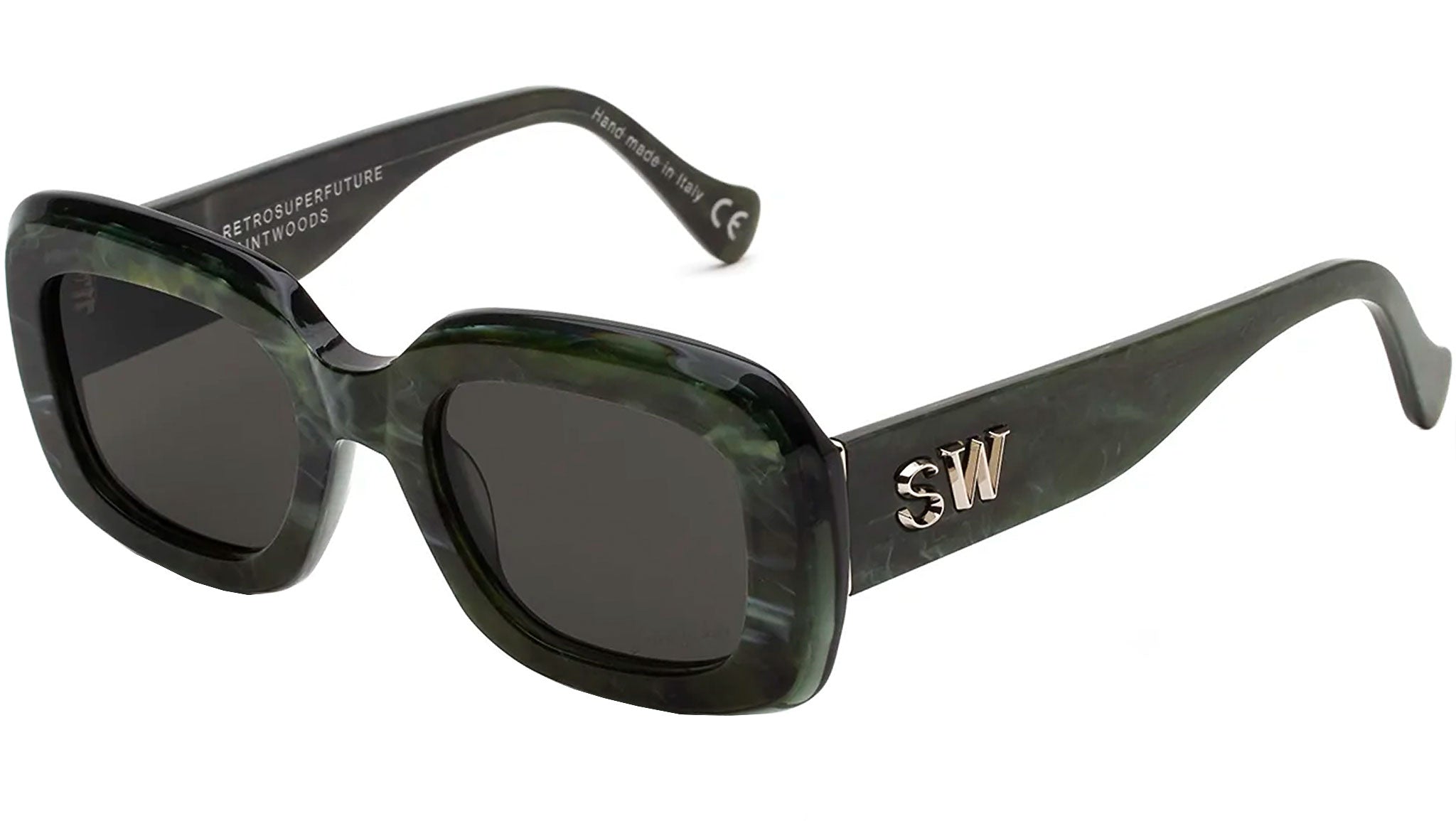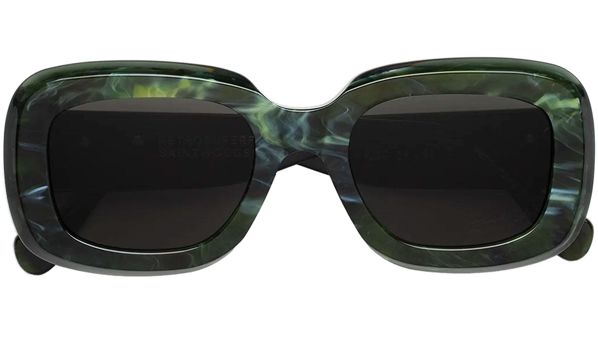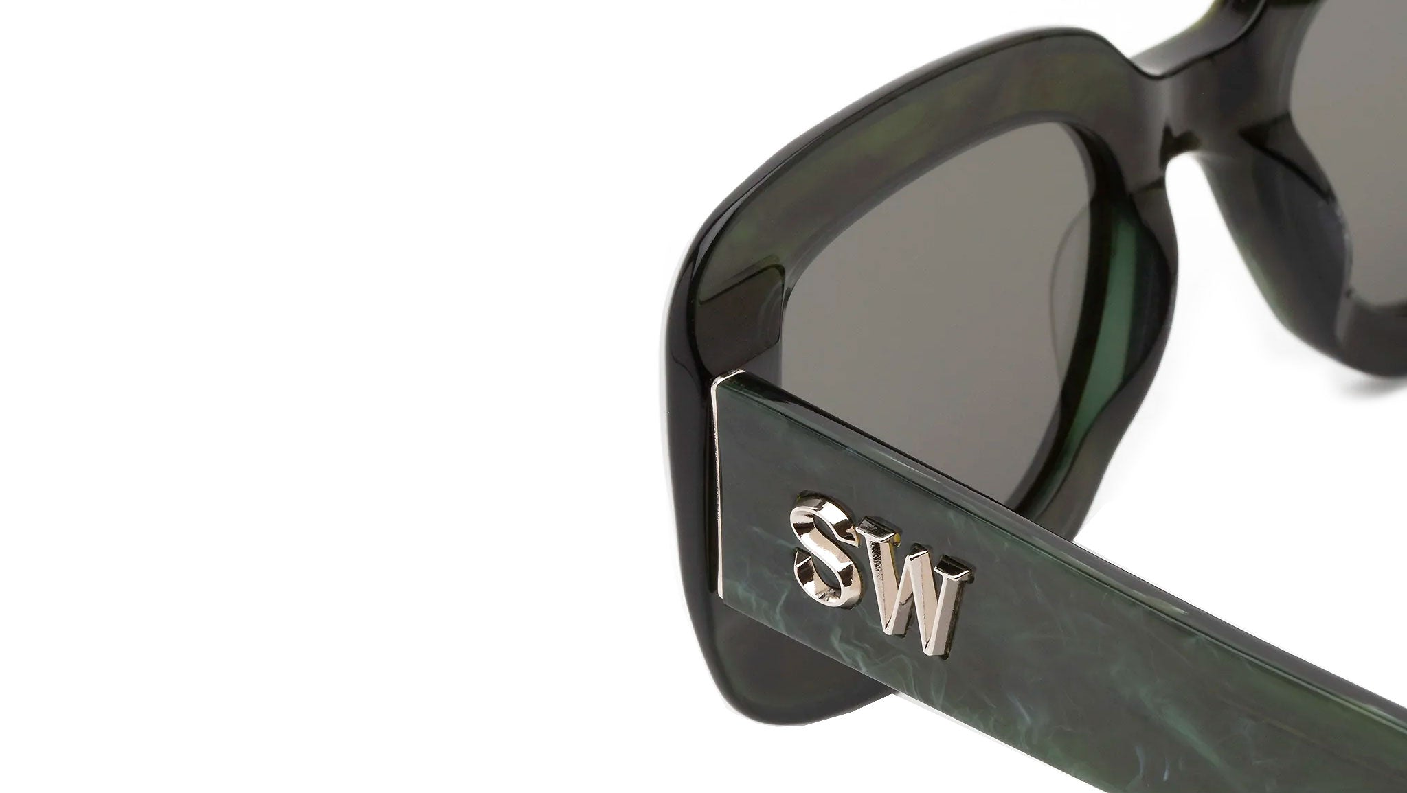 Designed for an exclusive collaboration with Montreal-based lifestyle brand Saintwoods, this model celebrates an authentic approach to contemporary style. Virgo is a playful and oversized silhouette characterized by carefully sculpted rims with an oblique finish around the lenses. It captures the essence of the 90s vibes, with its chunky and curvy profile and wide lens. The model is elevated with bold Saintwoods ‘SW’ metal decors on the temples, elevating the design with distinctive sculptural detailing. This version comes in an eclectic green tortoise acetate with black lenses and silver metal detailing.