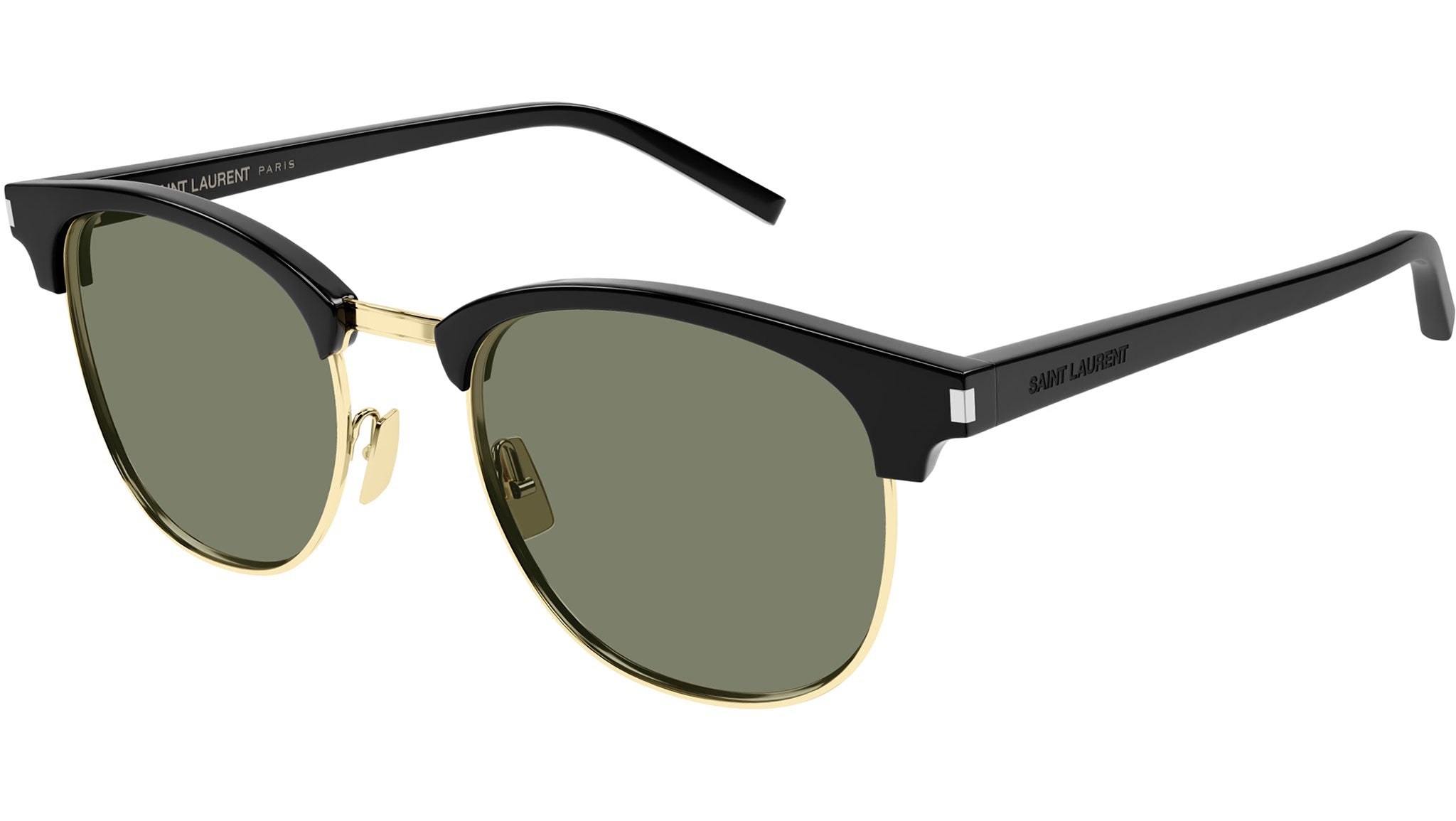Occhiali da sole Saint Laurent SL 108 014 uomo con montatura pantos in acetato nero solido / rims oro chiaro e lenti verde tinta unita. Linea: Classic. Codice modello: SL 108. Codice colore: 014. Made in Italy. Rivenditore autorizzato Saint Laurent online. Gli occhiali vengono consegnati con custodia e accessori originali e sono coperti dalla garanzia ufficiale di 12 mesi del produttore.