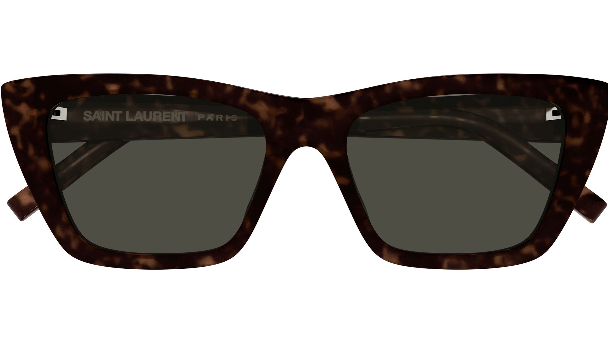 Occhiali da sole Saint Laurent linea New Wave modello SL 276 MICA variante colore 033 tartaruga scuro lucido con lenti color grigio tinta unita.