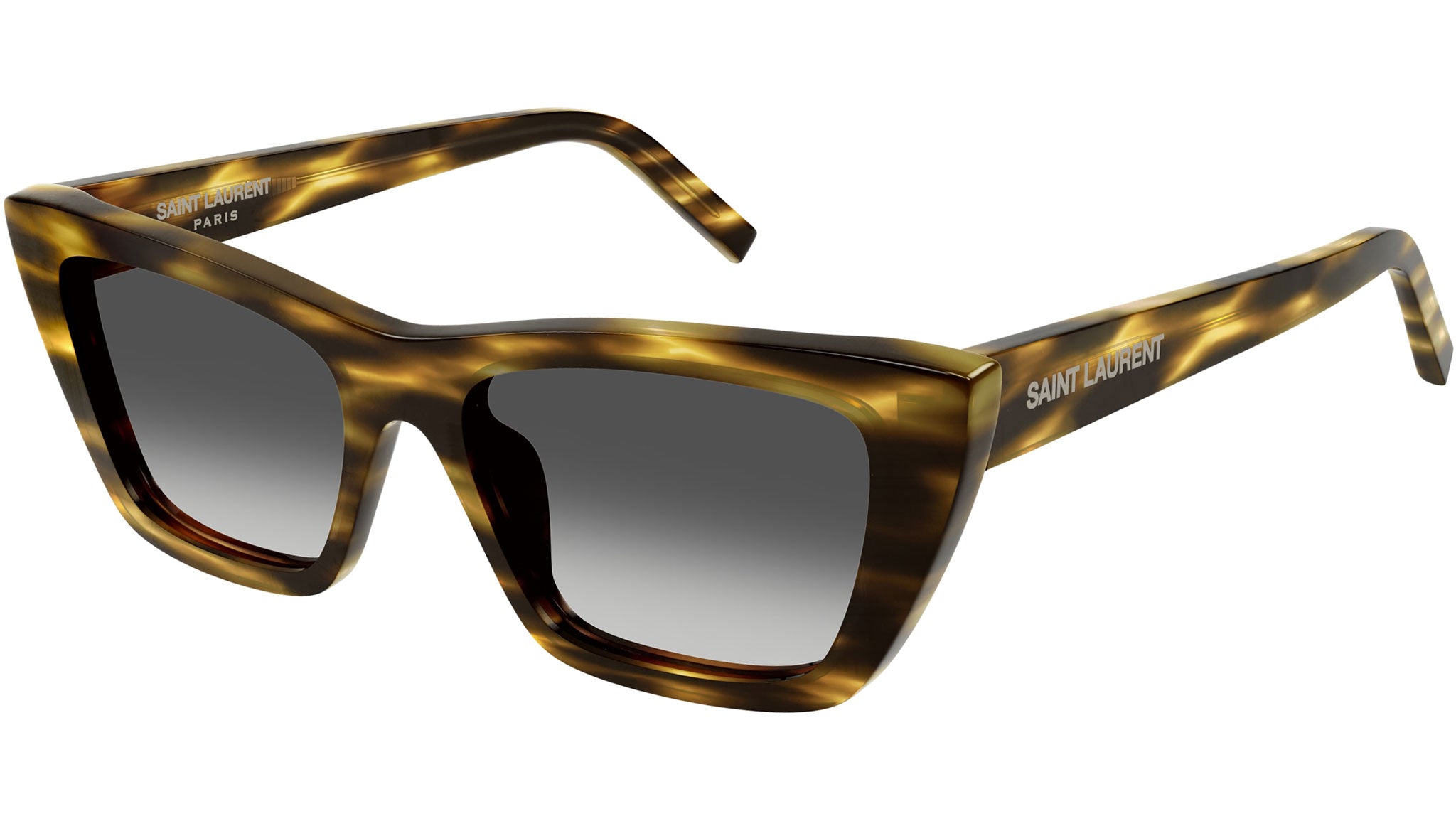 Occhiali da sole Saint Laurent modello SL 276 MICA linea New Wave codice colore 042 avana fiammato lucido in acetato forma cat eye con lenti color grigio sfumato.