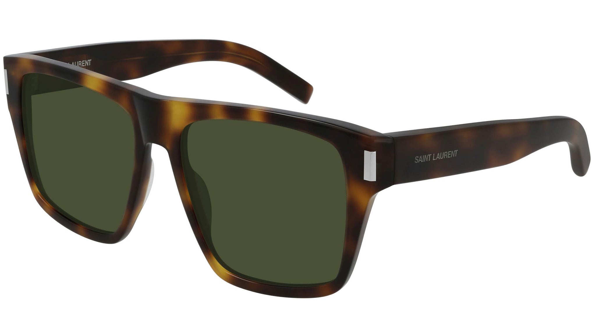 Occhiali da sole linea New Wave modello SL 424 003, variante colore avana medio lucido con lenti color verde tinta unita. Saint Laurent Eyewear rappresenta in pieno le attitudini uniche del brand: stile senza tempo coniugato a un moderno concetto di lusso. La collezione sole offre una raffinata selezione di prodotti unici, contraddistinti da una qualità inarrivabile.