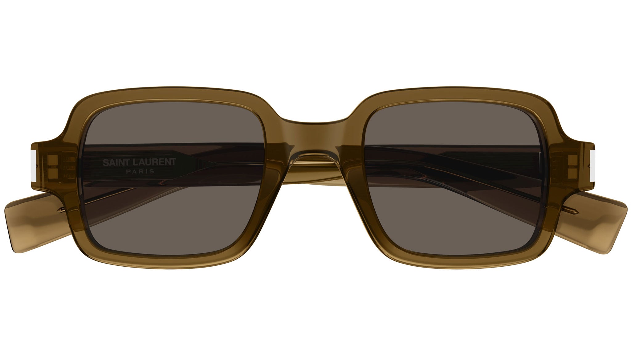 Occhiali da sole Saint Laurent SL 720 005 unisex con montatura rettangolare in acetato riciclato marrone cognac trasparente e lenti marrone chiaro tinta unita. Linea: Corner Angle. Codice modello: SL 720. Codice colore: 005. Made in Italy. Rivenditore autorizzato Saint Laurent online. Gli occhiali vengono consegnati con custodia e accessori originali e sono coperti dalla garanzia ufficiale di 12 mesi del produttore.