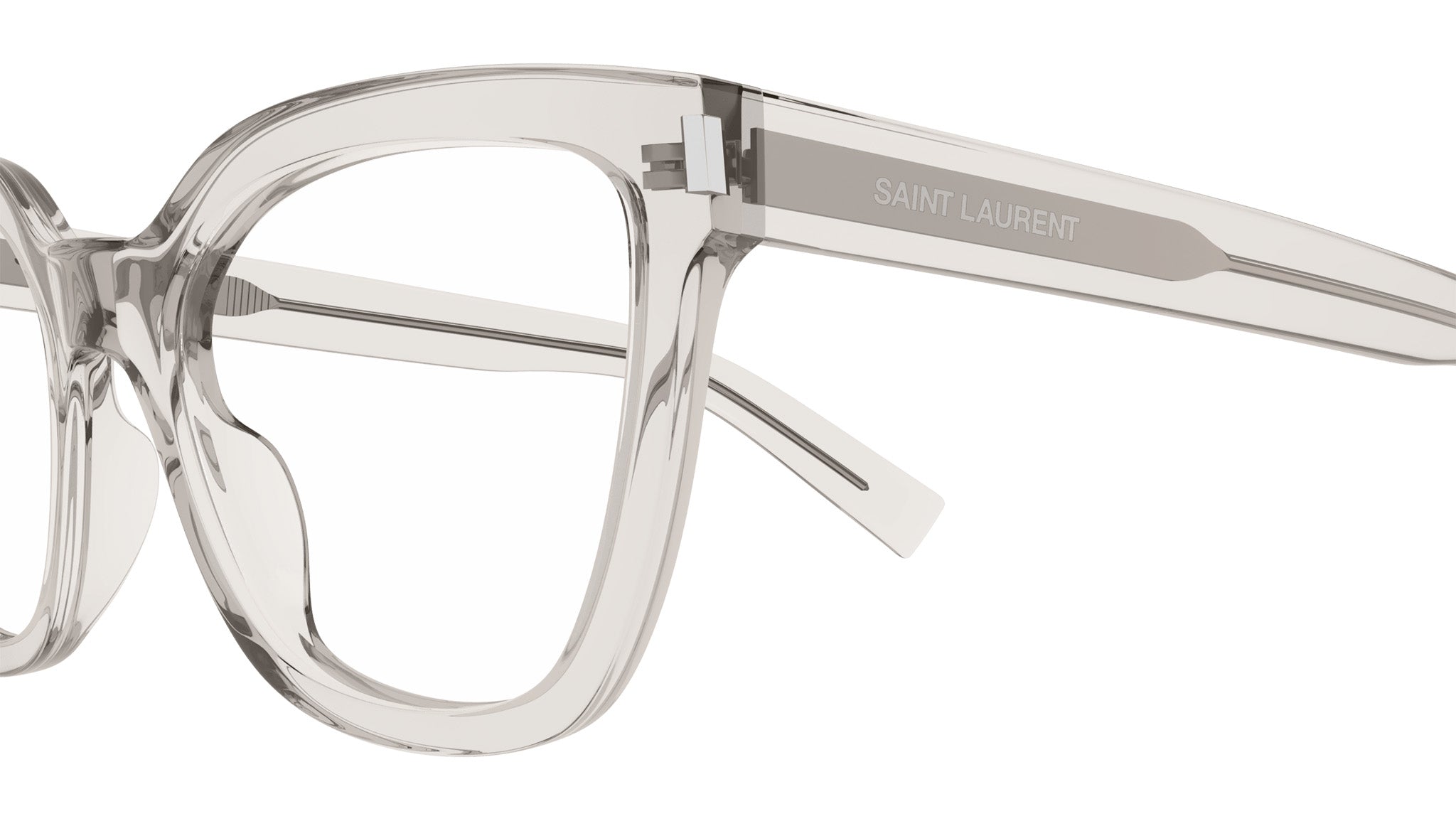 Occhiali da vista Saint Laurent SL 748 004 donna con montatura cat eye in acetato riciclato crema trasparente lucido e lenti demo. Linea: Corner Angle. Codice modello: SL 748. Codice colore: 004. Made in Japan. Rivenditore autorizzato Saint Laurent online. Gli occhiali vengono consegnati con custodia e accessori originali e sono coperti dalla garanzia ufficiale di 12 mesi del produttore.