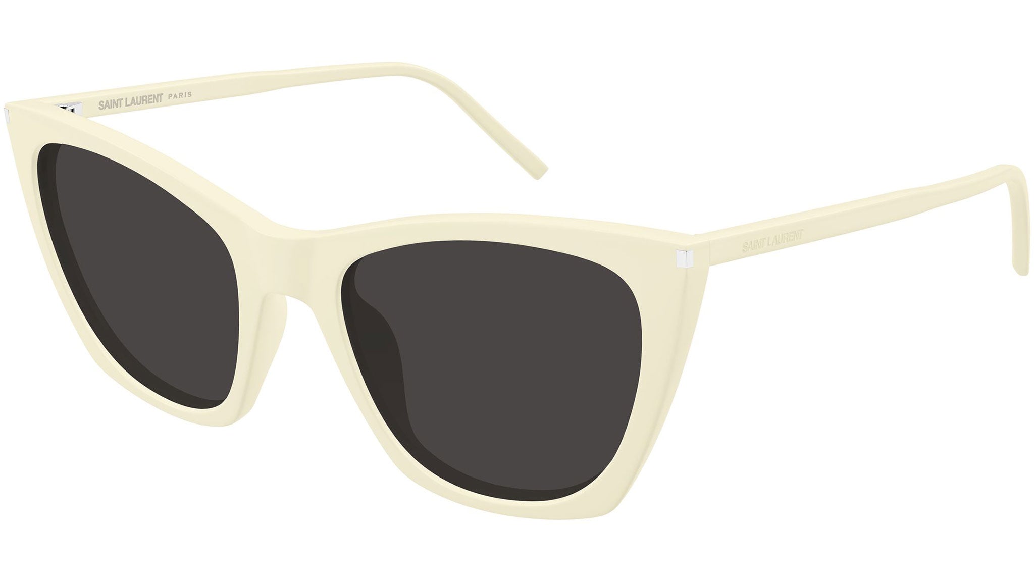 Occhiali da sole Saint Laurent SL 214 KATE THIN 005 donna con montatura cat eye in acetato riciclato avorio tinta unita lucido e lenti grigio tinta unita. Linea: Corner Angle. Codice modello: SL 214 KATE THIN. Codice colore: 005. Made in Italy. Rivenditore autorizzato Saint Laurent online. Gli occhiali vengono consegnati con custodia e accessori originali e sono coperti dalla garanzia ufficiale di 12 mesi del produttore.