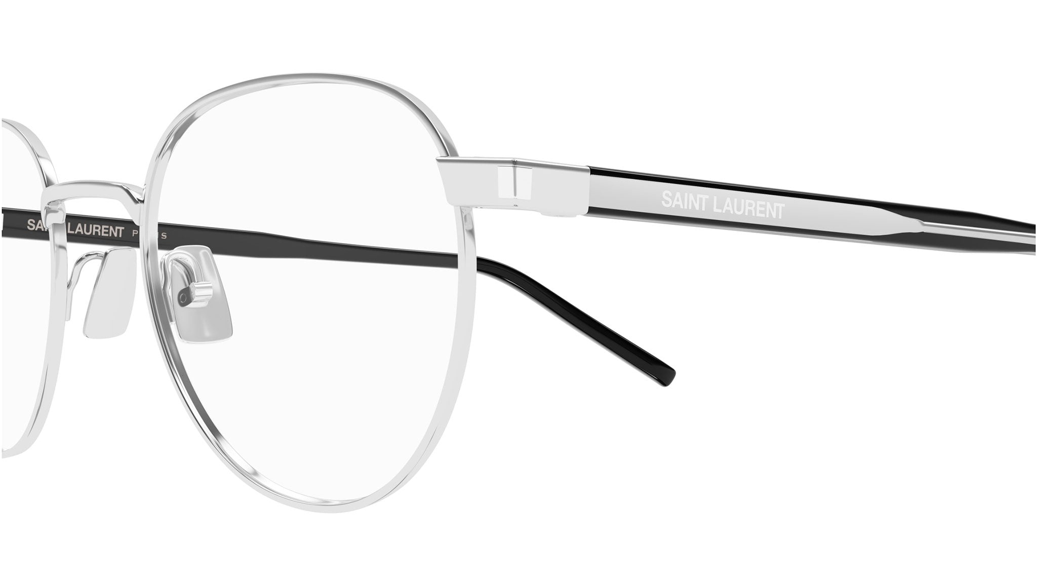 Occhiali da vista Saint Laurent SL 781 001 unisex con montatura ovale in metallo argento e lenti demo. Linea: Corner Angle. Codice modello: SL 781. Codice colore: 001. Made in Japan. Rivenditore autorizzato Saint Laurent online. Gli occhiali vengono consegnati con custodia e accessori originali e sono coperti dalla garanzia ufficiale di 12 mesi del produttore.