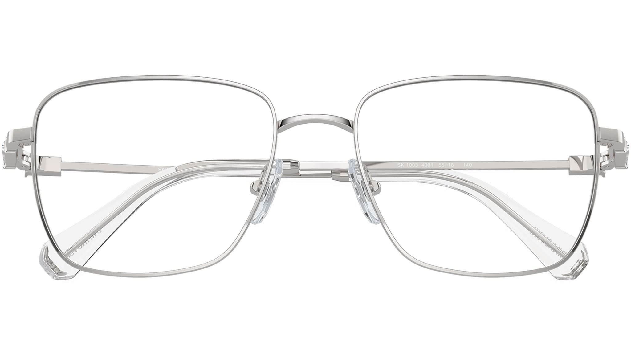 Montatura per occhiali da vista Swarovski donna modello 1003 full rim in metallo argento con lenti demo base 4. Naselli regolabili. Linea: Science of Facets. Codice brand: 0SK1003. Codice colore: 4001. Rivenditore autorizzato online Swarovski Eyewear. Ogni prodotto Swarovski viene consegnato con astuccio originale e accessori ed è coperto da garanzia del produttore di 12 mesi.