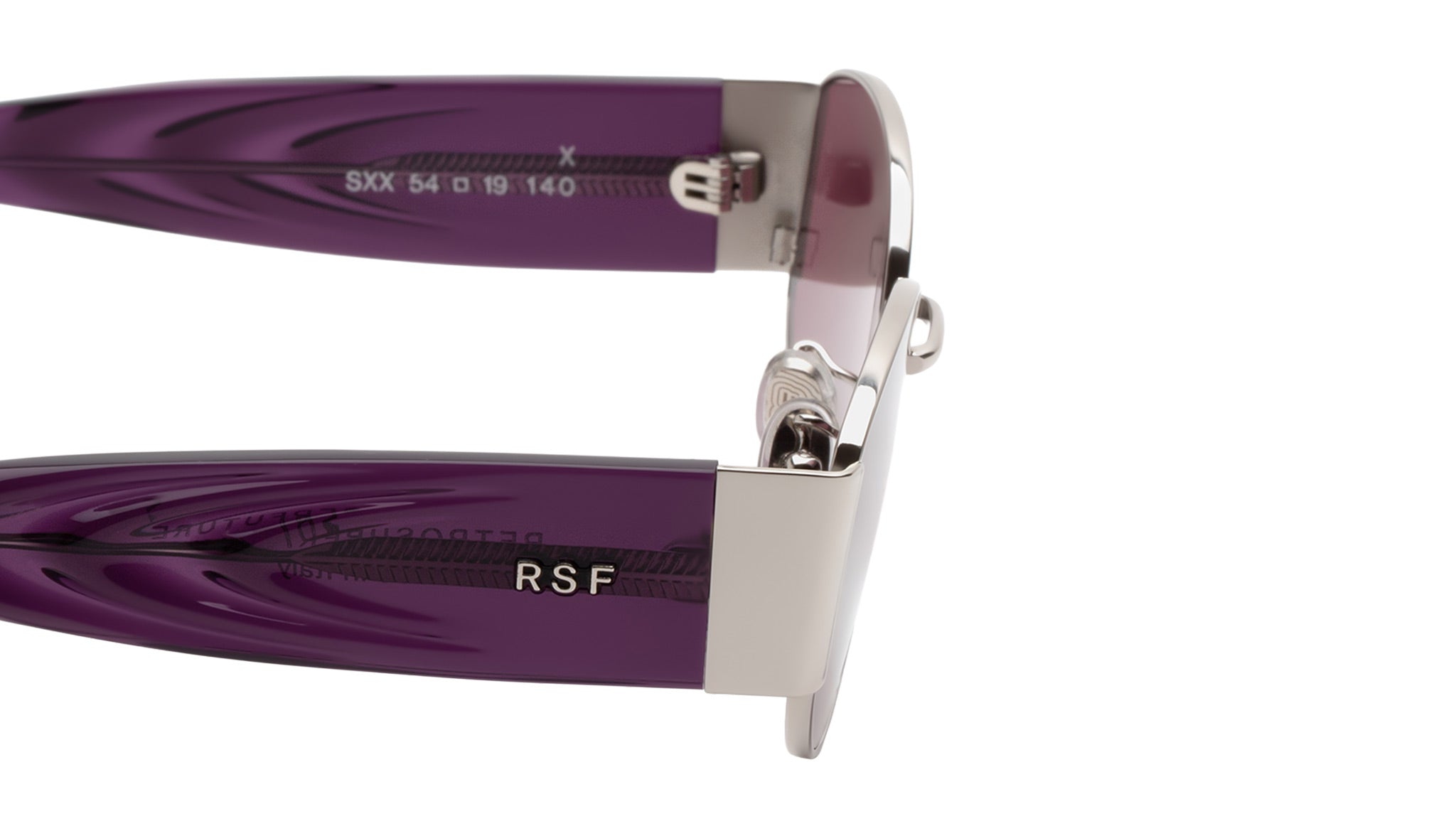 Occhiali da sole Retrosuperfuture X Melanzana con montatura in acetato-metallo viola e lenti color bordeaux. Codice modello: SXX. Made in Italy. Rivenditore autorizzato RSF online. Gli occhiali vengono consegnati con custodia e accessori originali e sono coperti dalla garanzia ufficiale di 12 mesi del produttore.