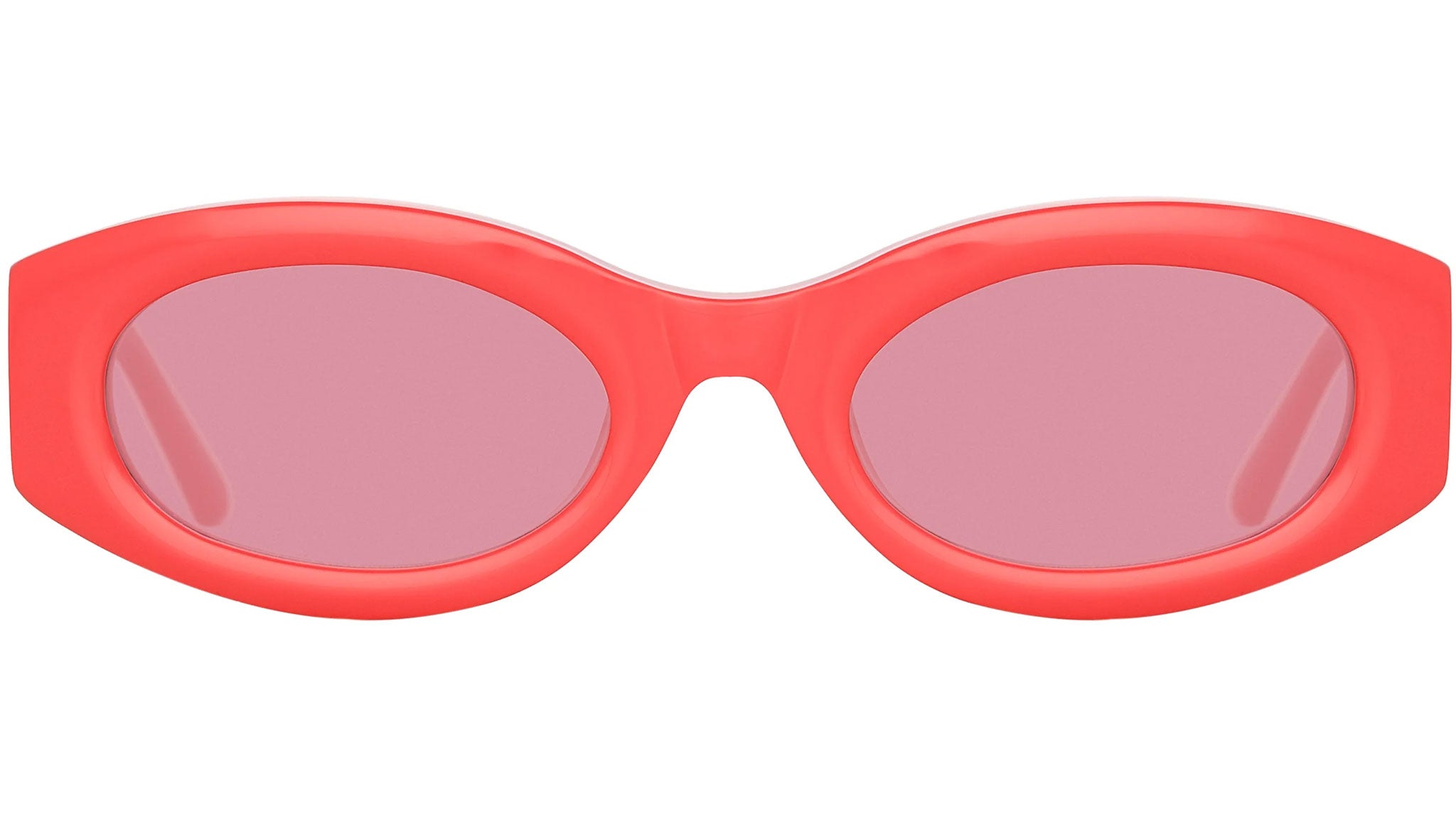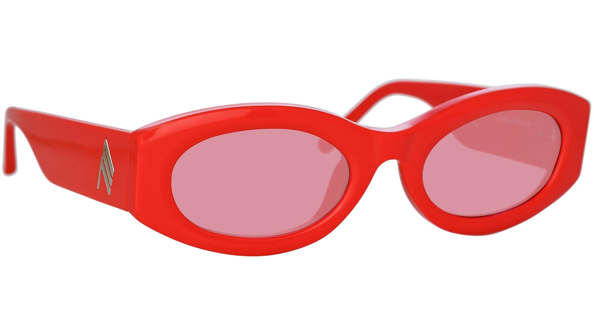 Introducing Berta the newest addition to the Linda Farrow + The Attico collaboration. The oval sunglasses are sculpted from coral pink acetate and hand polished for a luxurious high shine. Wide temples bear a silver 'A' logo and rounded temple tips for comfort. Completed with solid pink lenses for UV protection.