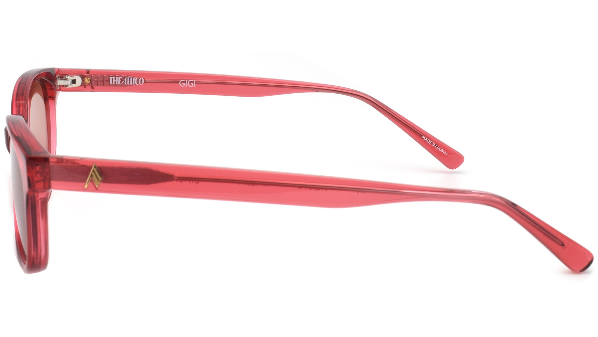 Una versione più sottile e leggera di una delle forme più classiche: The Attico Gigi emana bellezza senza eccedere. Occhiali da sole declinati in una elegante forma rettangolare, nati dalla collaborazione con The Attico, sono realizzati in acetato nero riciclato con naselli e finali astina modellati per offrire il massimo comfort. Nella versione con lenti rosse e rifiniti con il distintivo marchio "A" dorato sull'astina.