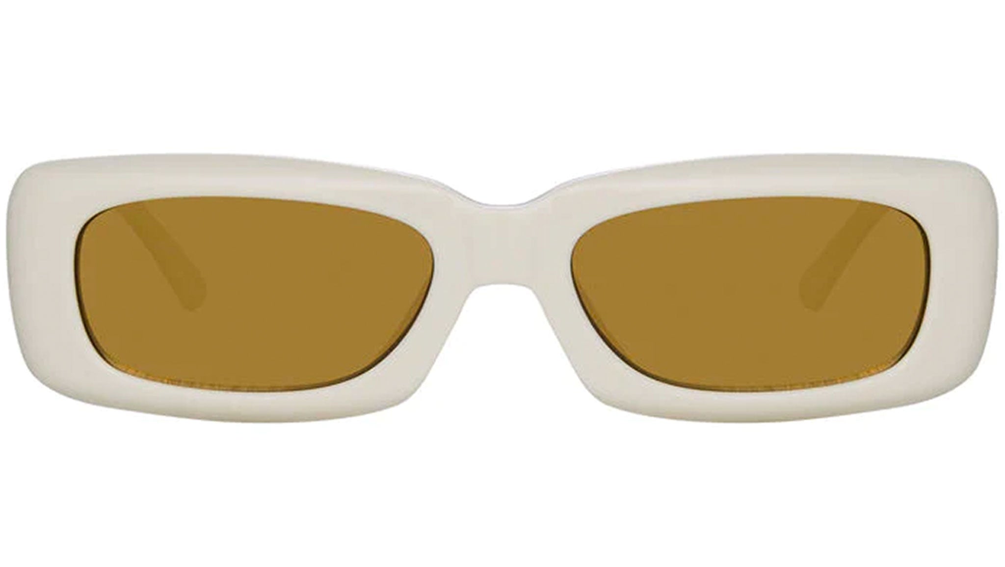 These slim rectangular sunglasses are realised in a pop white acetate, beveled and highly polished for a luxurious soft edge finish. Wide temples are detailed with gold branding and solid brown lenses offer 100% UV protection. Sculpted nose pads and temple tips provide comfort to the wearer.