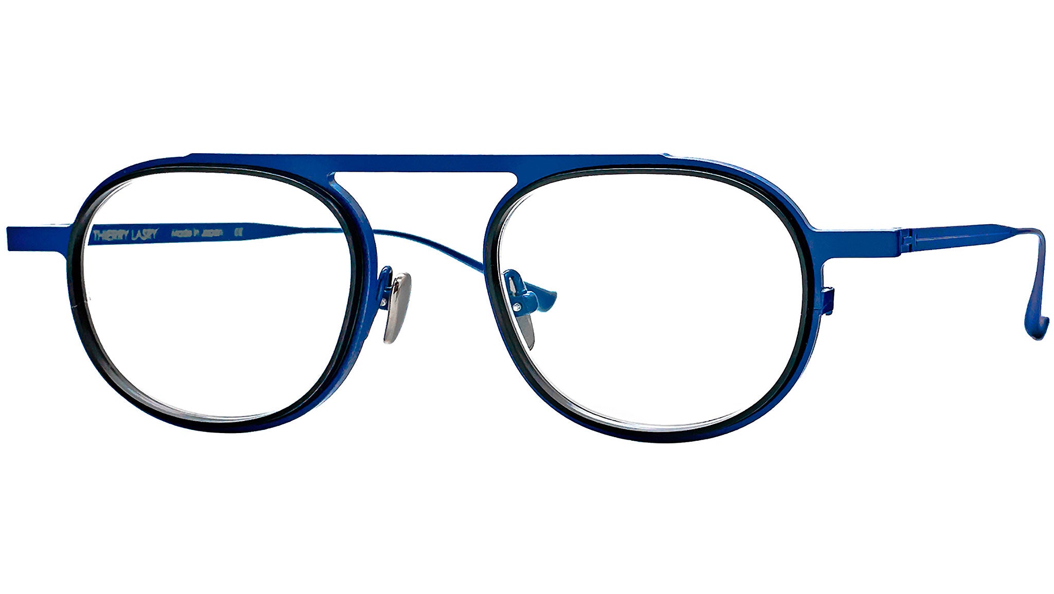 Handcrafted in Japan from titanium, ANOMALY is a classic aviator frame with a THIERRY LASRY twist. The ultra-sleek frame features projected lenses accentuated with contrasting rims, a matte facade, and nose pads. Matte blue and black. Composition: titanium. Handmade in Japan. Includes a microfiber pouch, a hardshell case, and a signature THIERRY LASRY box.