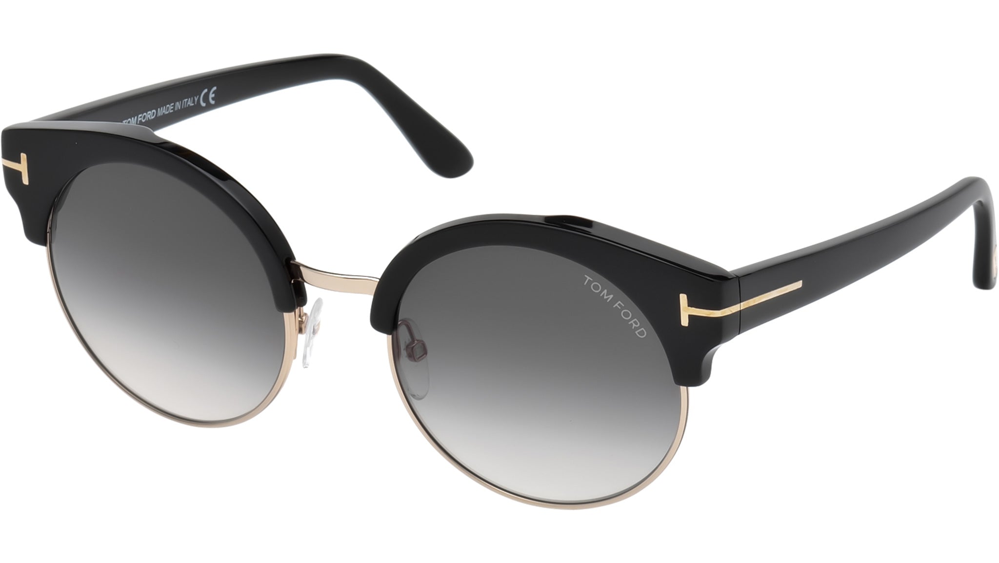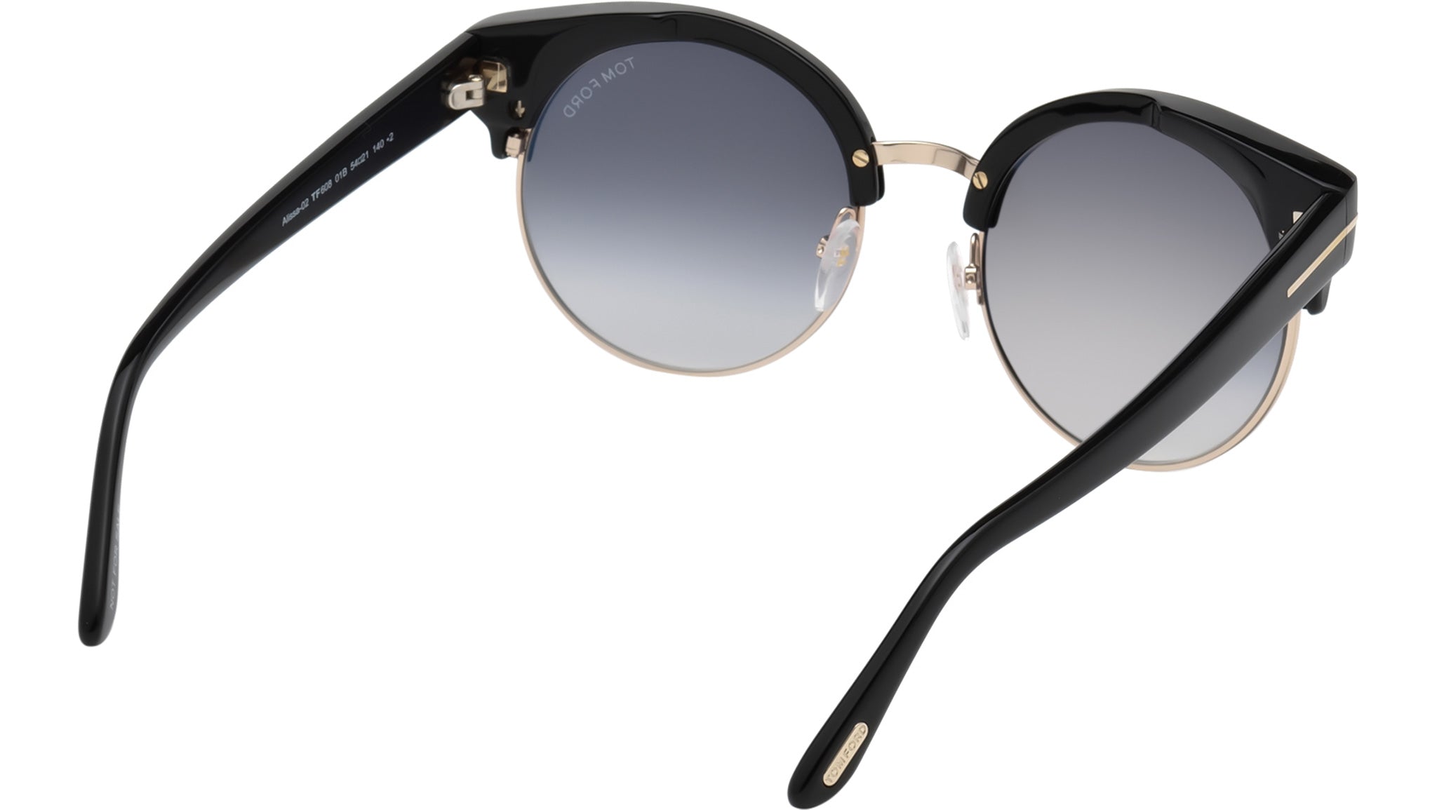 Occhiali da sole Tom Ford donna modello Alissa-02 FT0608 in acetato-metallo nero lucido / oro con lenti color grigio sfumato. Codice brand: 0608. Codice colore: 01B. Rivenditore autorizzato Tom Ford online. Gli occhiali vengono consegnati con custodia e accessori originali e sono coperti da garanzia standard di 12 mesi del produttore.