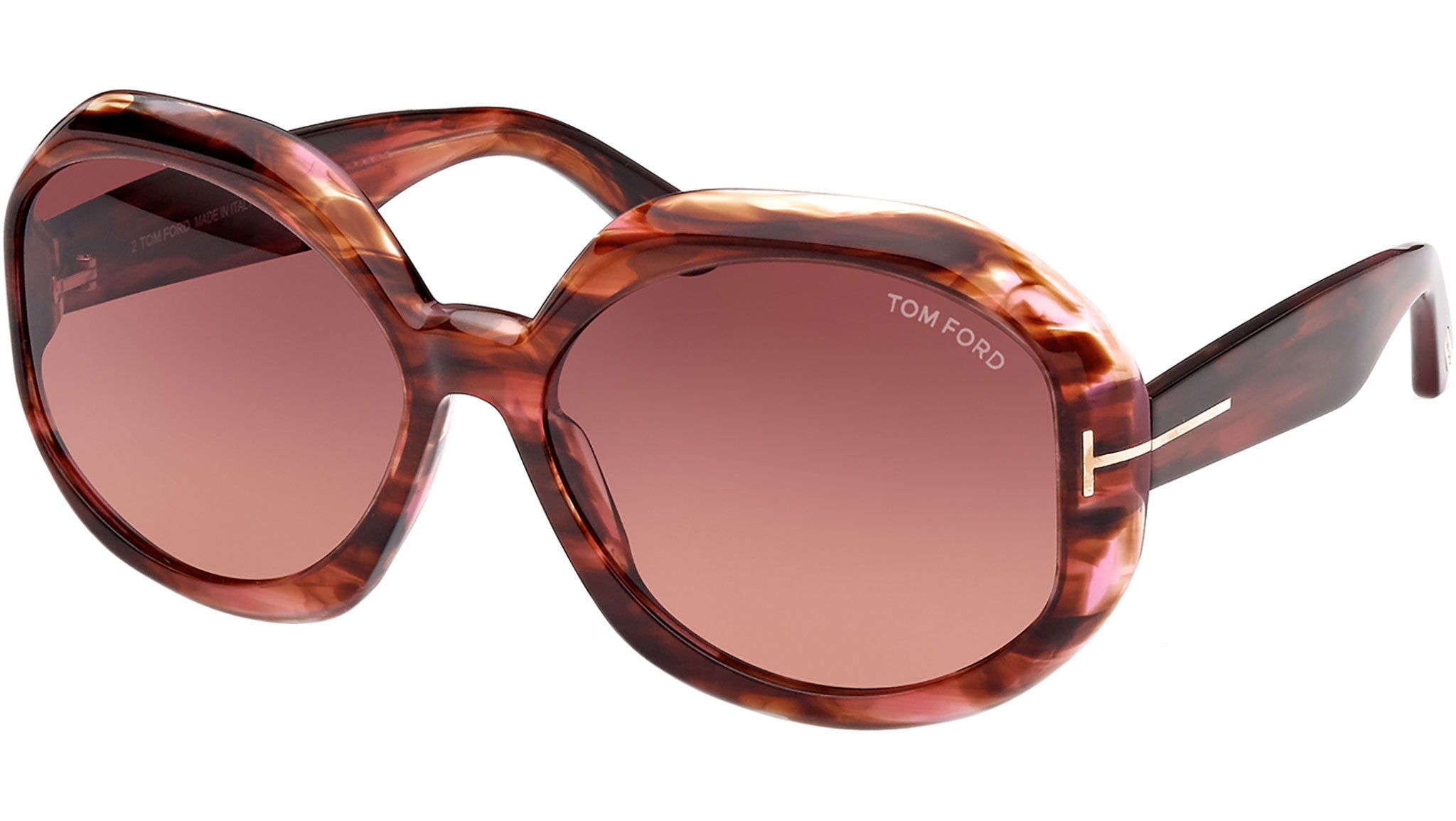Occhiali da sole Tom Ford Georgia 02 modello FT1011 in avana fantasia, codice colore 55F con lenti color marrone sfumato. L'ultima collezione di occhiali Tom Ford trae ispirazione da due concetti distinti: minimalismo raffinato, che mette in risalto design essenziali, forme senza tempo, materiali premium; e combinazioni preziose, che mostrano miscele innovative di acetato e metallo, soluzioni di design inaspettate e progressi tecnologici. Esprimendosi in silhouette audaci ed eleganti, la collezione presenta occhiali caratterizzati da squisite miscele di acetato e metallo, espressione di design distintivi e immediatamente riconoscibili. Elementi iconici come il logo in metallo a T e il famoso simbolo dell'infinito adornano le montature, mentre gli stili più classici vengono reinventati in palette di colori freschi che riflettono le ultime tendenze della moda.
