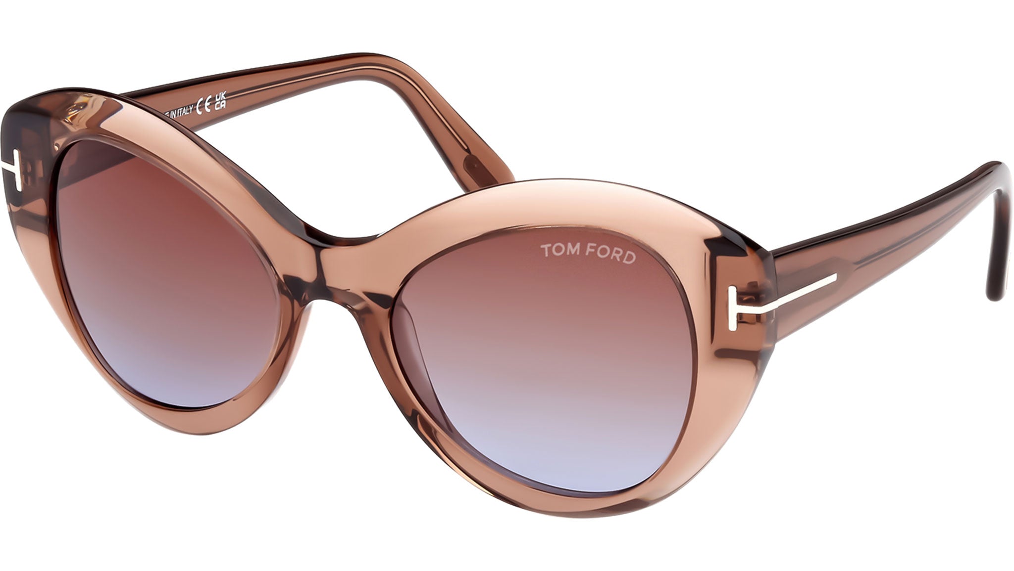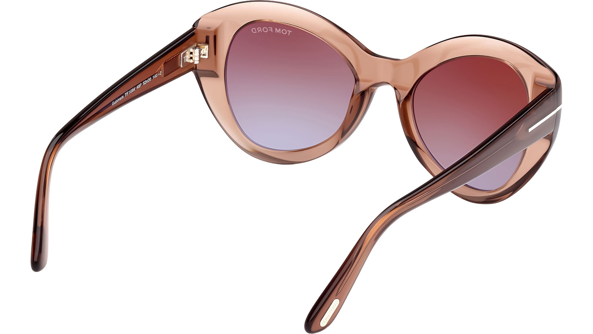 Occhiali da sole Tom Ford donna modello Guinevere FT1084 in acetato marrone chiaro lucido con lenti color marrone sfumato. Codice brand: 1084. Codice colore: 48F. Rivenditore autorizzato Tom Ford online. Gli occhiali vengono consegnati con custodia e accessori originali e sono coperti da garanzia standard di 12 mesi del produttore.