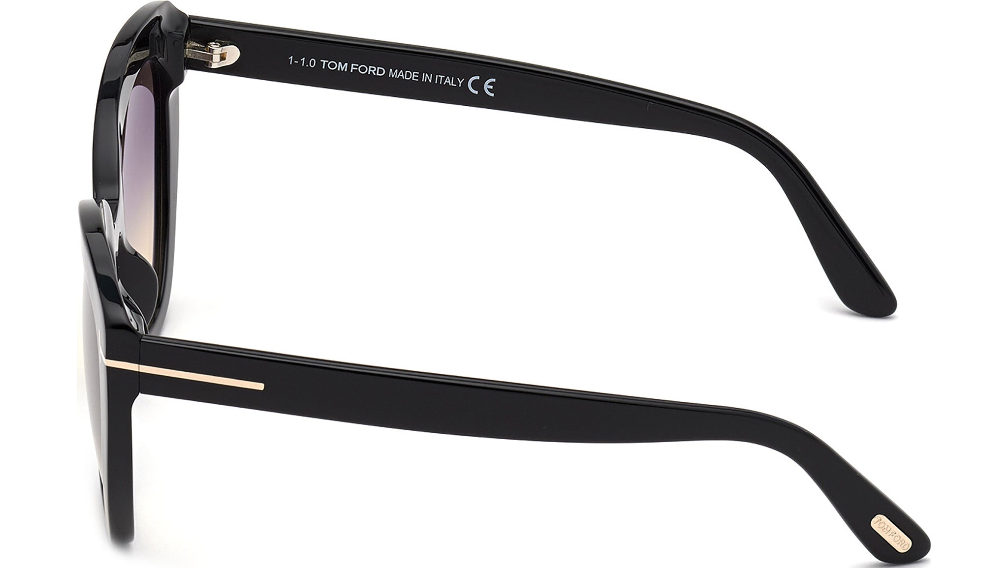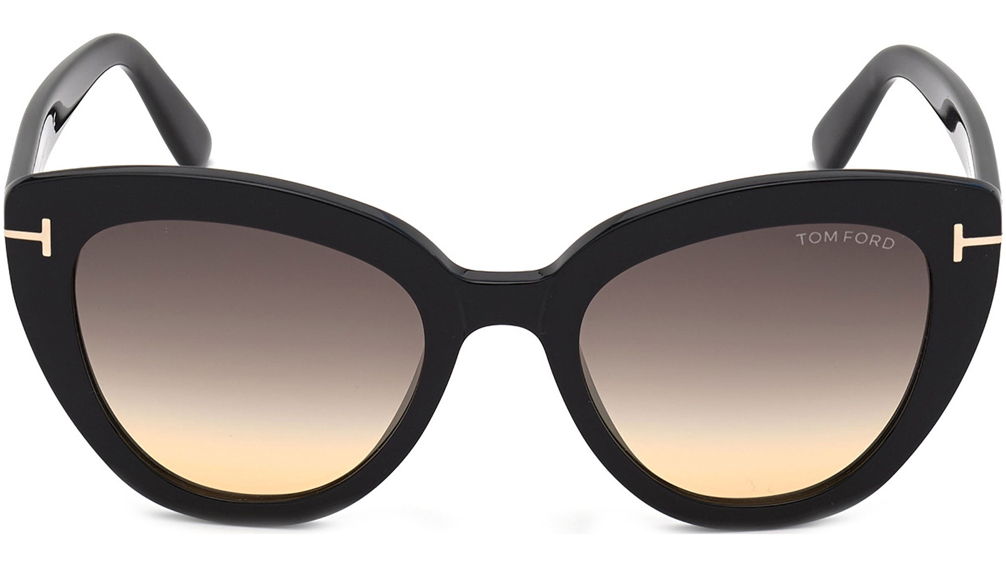 Occhiali da sole Tom Ford Izzi codice FT0845 01B con montatura color nero lucido e lenti color marrone sfumato.