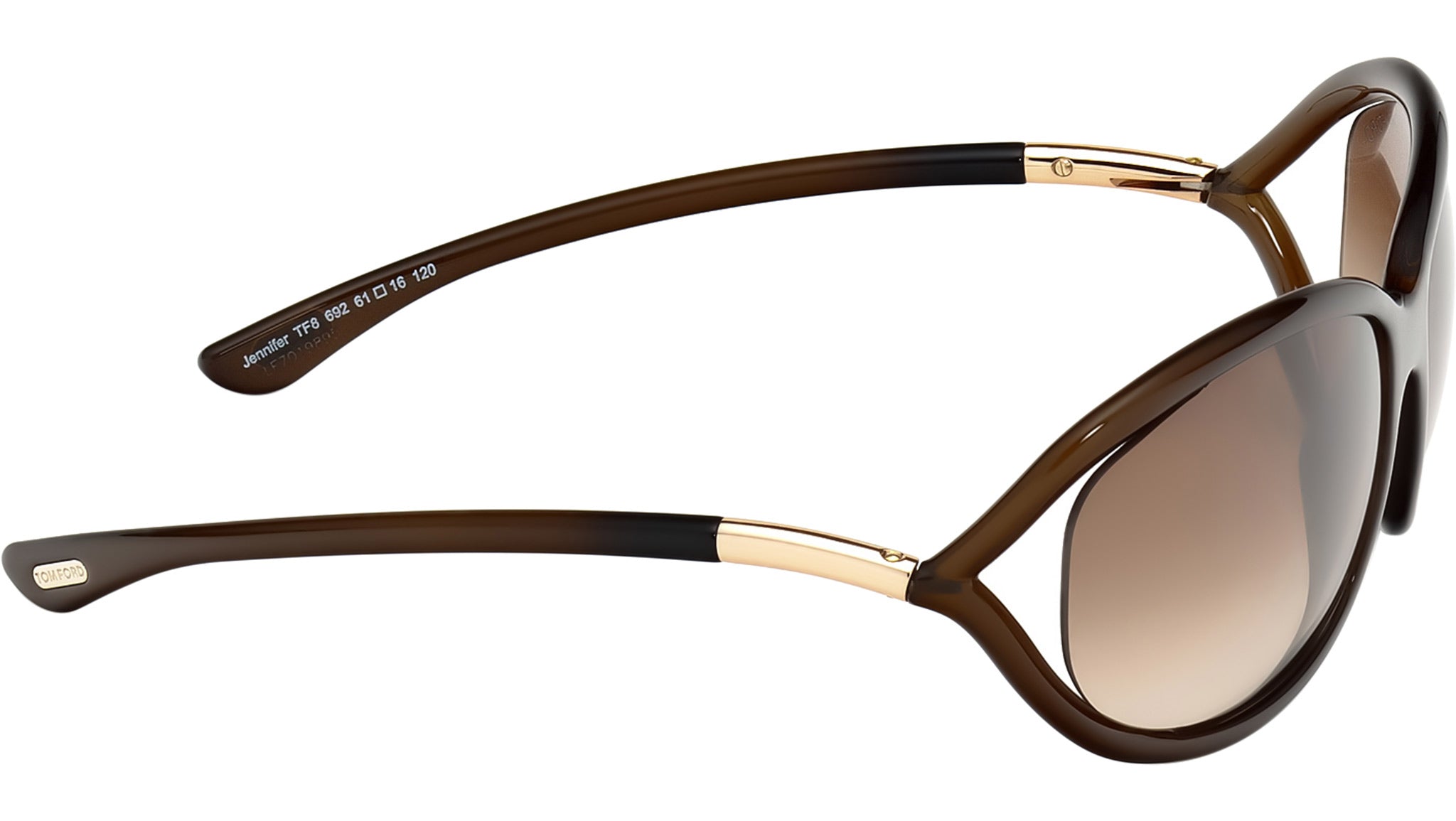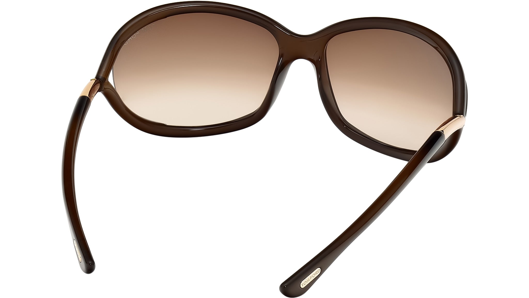 Occhiali da sole Tom Ford donna modello Jennifer FT0008 in inietatto marrone scuro lucido con lenti color gradiente marrone. Codice brand: 0008. Codice colore: 692. Rivenditore autorizzato Tom Ford online. Gli occhiali vengono consegnati con custodia e accessori originali e sono coperti da garanzia standard di 12 mesi del produttore.