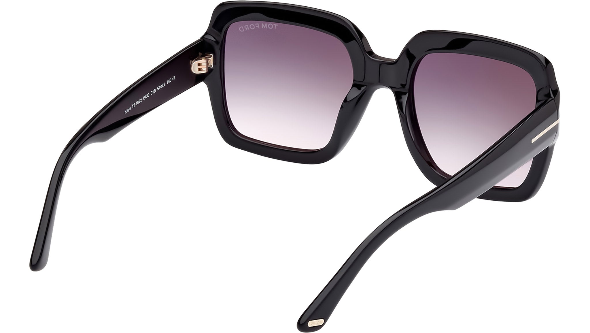 Occhiali da sole Tom Ford donna modello Kaya FT1082 in acetato nero lucido con lenti color grigio fumo sfumato. Codice brand: 1082. Codice colore: 01B. Rivenditore autorizzato Tom Ford online. Gli occhiali vengono consegnati con custodia e accessori originali e sono coperti da garanzia standard di 12 mesi del produttore.
