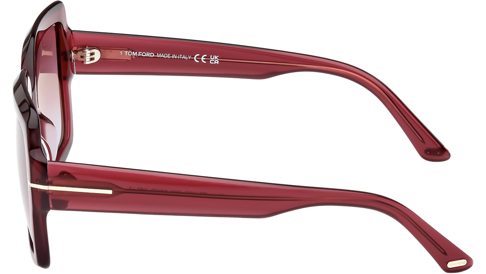 Occhiali da sole Tom Ford donna modello Kaya FT1082 in acetato rosso scuro lucido con lenti color viola. Codice brand: 1082. Codice colore: 66Y. Rivenditore autorizzato Tom Ford online. Gli occhiali vengono consegnati con custodia e accessori originali e sono coperti da garanzia standard di 12 mesi del produttore.