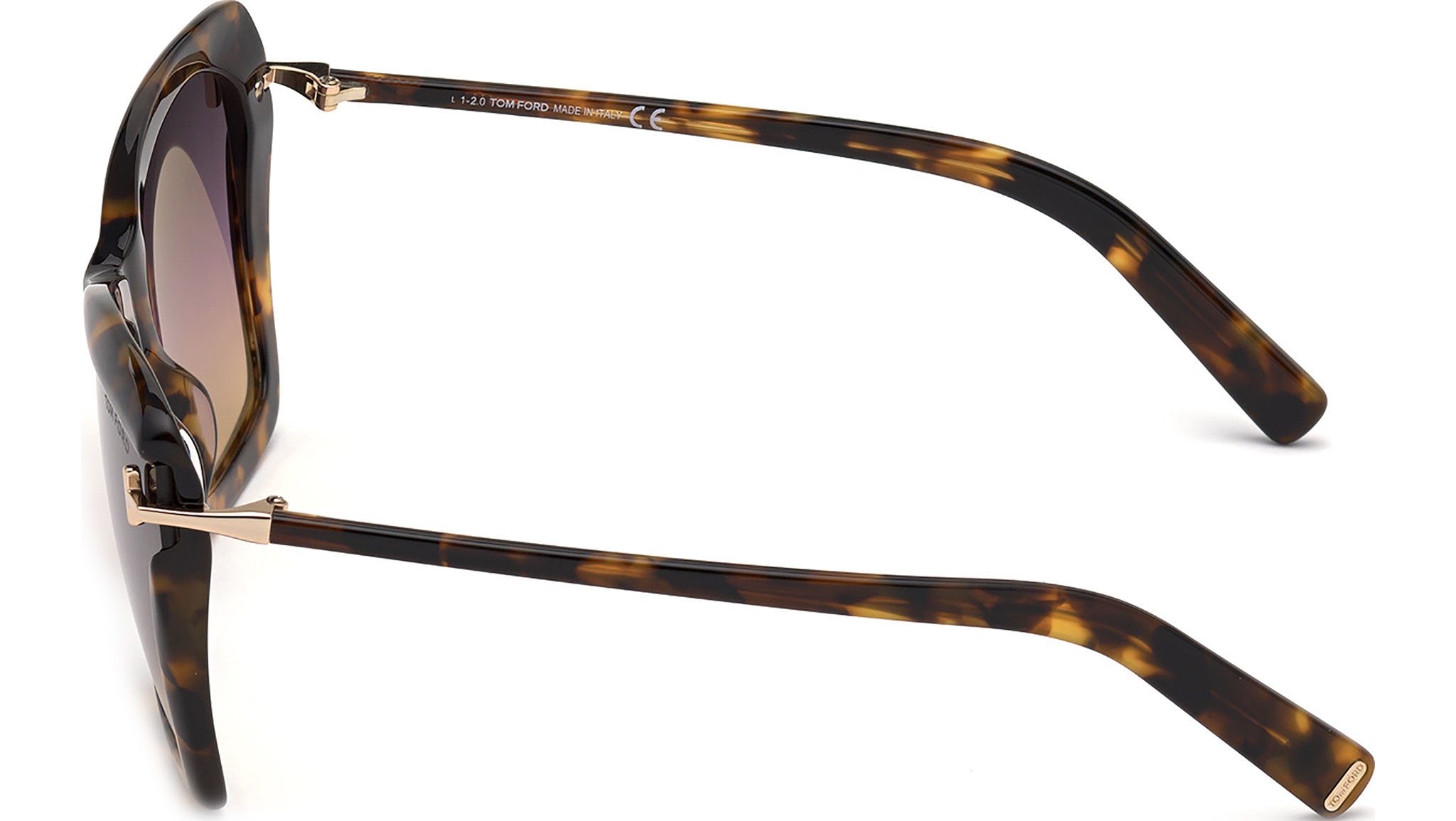 Occhiali da sole Tom Ford Leah codice FT0849 55B con montatura color avana scuro e lenti color viola sfumato.