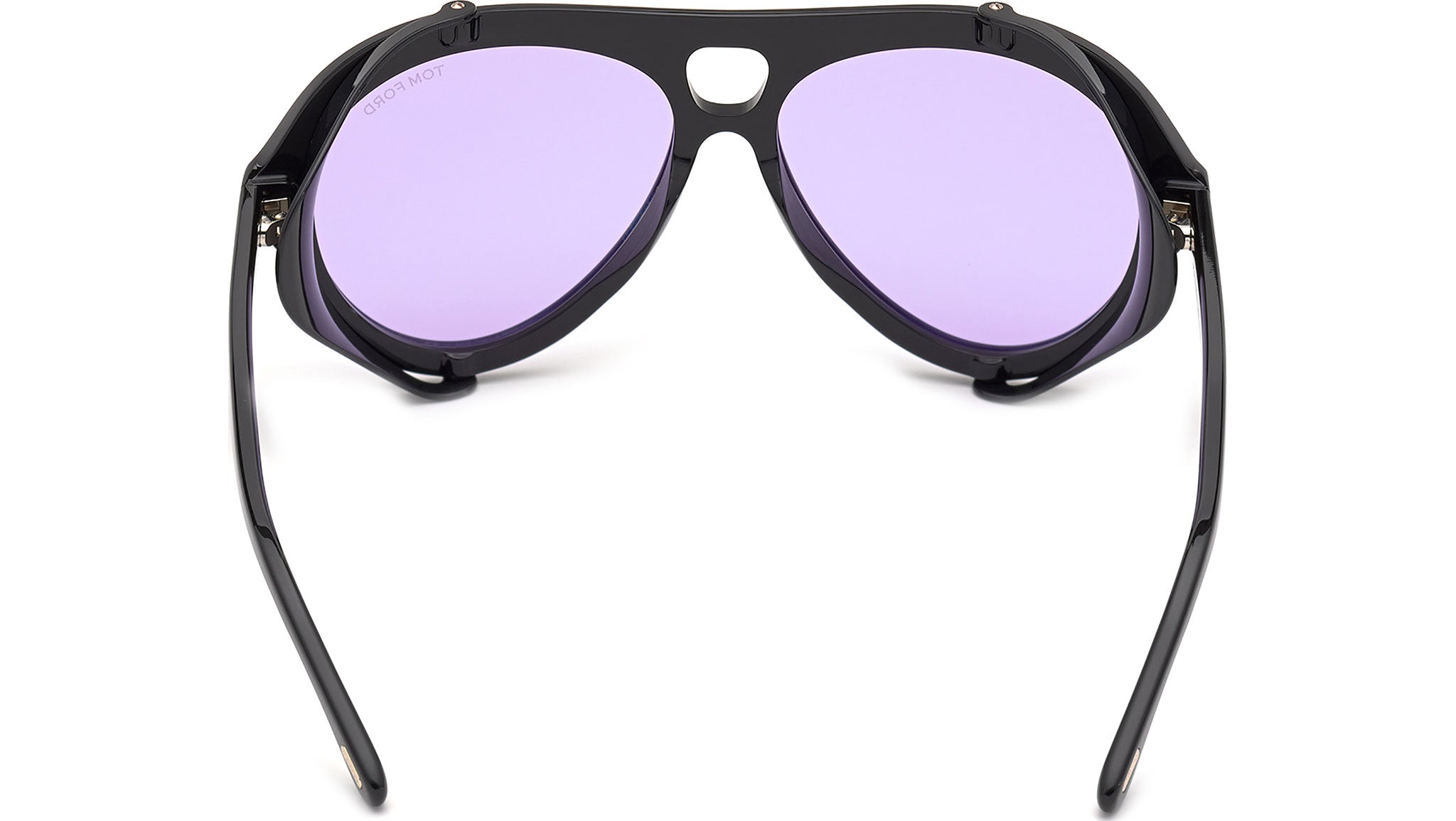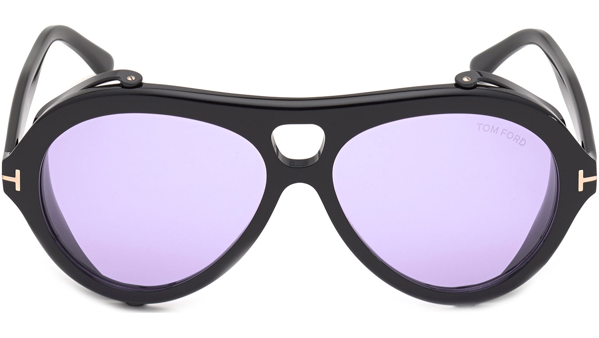 Occhiali da sole Tom Ford Neughman codice FT0882 01Y con montatura color nero lucido e lenti color viola.