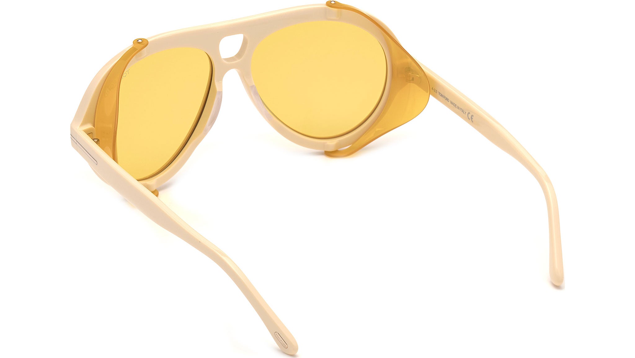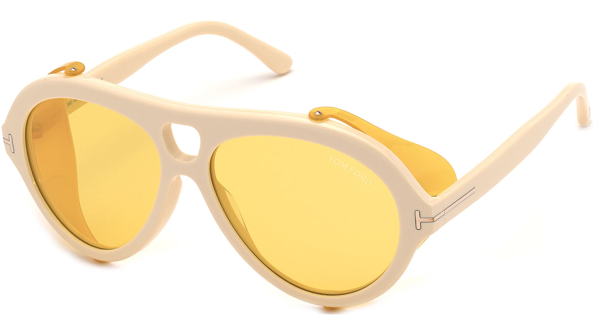 Occhiali da sole Tom Ford Neughman codice FT0882 25E con montatura color bianco avorio e lenti color giallo.