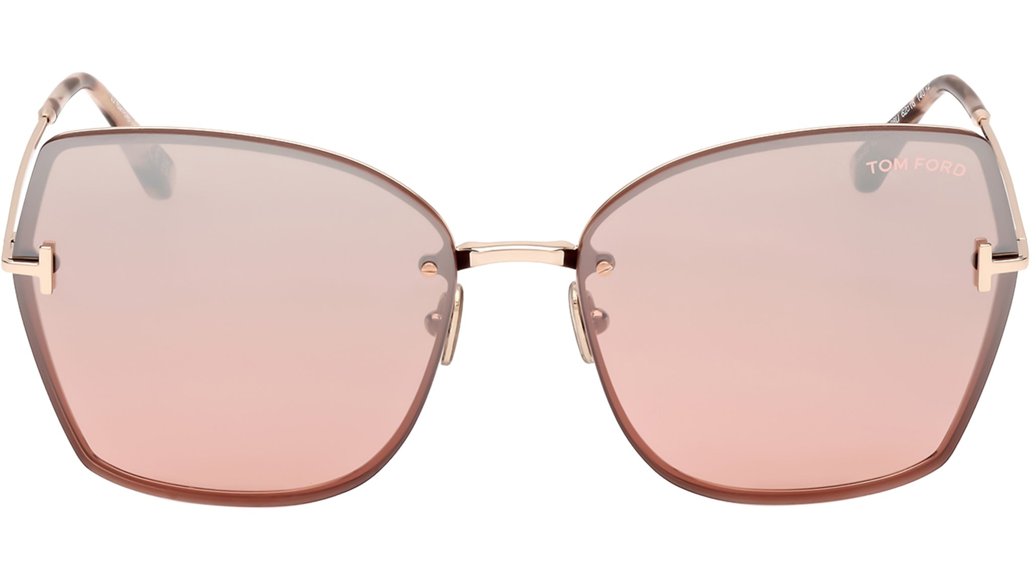 Occhiali da sole Tom Ford donna modello Nickie-02 FT1107 in metallo oro rosa lucido con lenti color bordeaux a specchio. Codice brand: 1107. Codice colore: 28U. Rivenditore autorizzato Tom Ford online. Gli occhiali vengono consegnati con custodia e accessori originali e sono coperti da garanzia standard di 12 mesi del produttore.