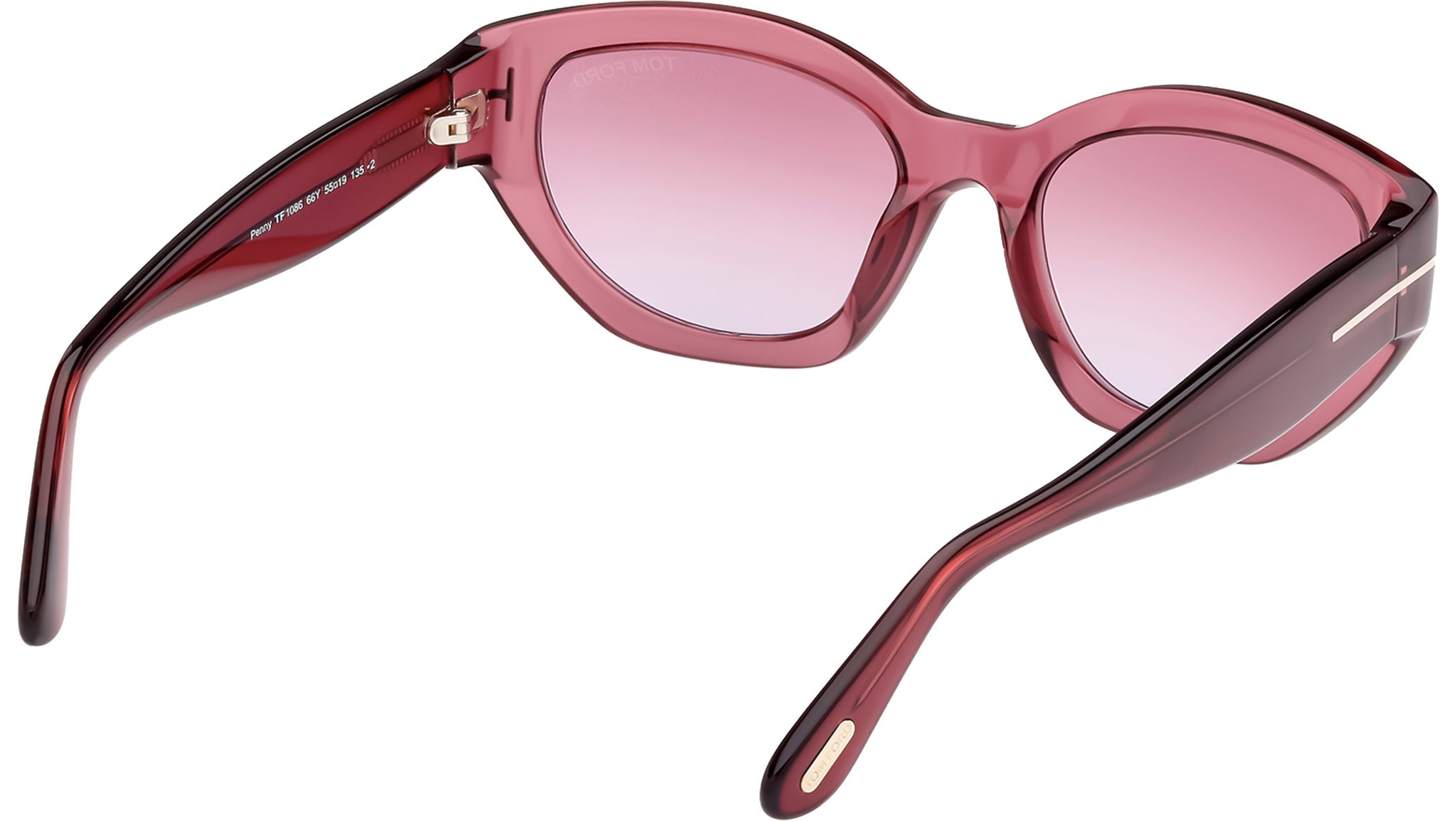 Occhiali da sole Tom Ford donna modello Penny FT1086 in acetato rosso scuro lucido con lenti color viola. Codice brand: 1086. Codice colore: 66Y. Rivenditore autorizzato Tom Ford online. Gli occhiali vengono consegnati con custodia e accessori originali e sono coperti da garanzia standard di 12 mesi del produttore.