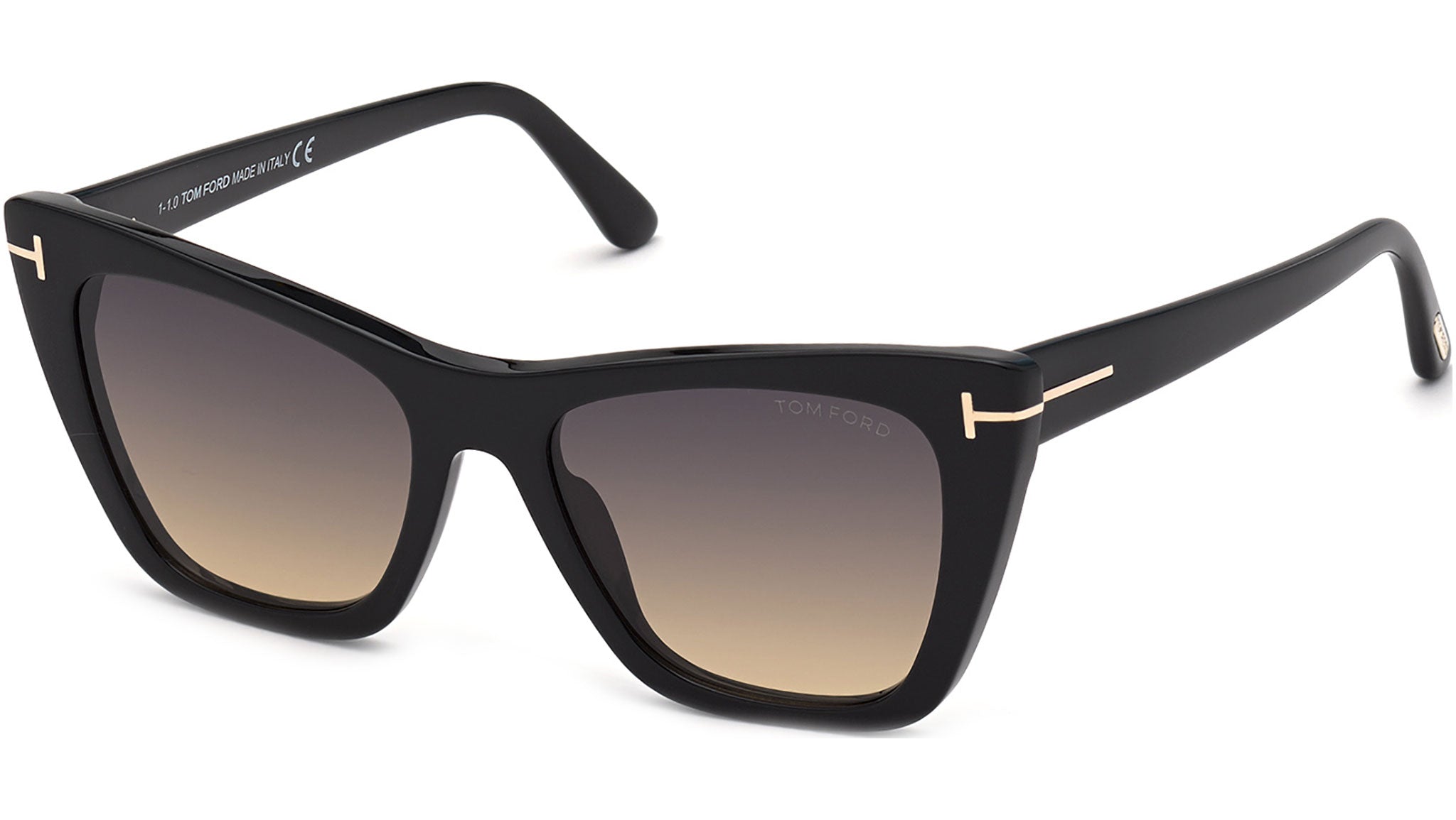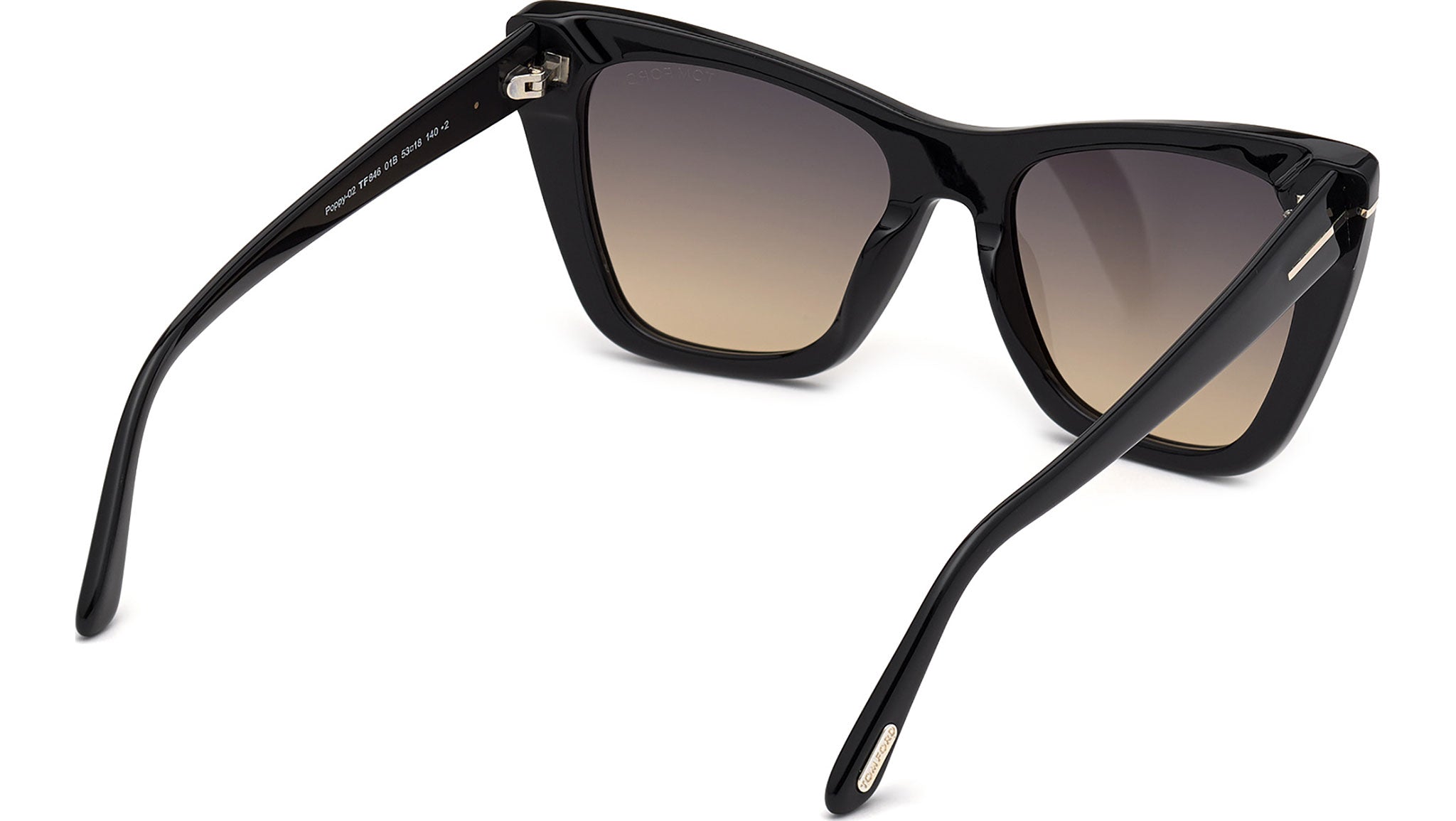 Occhiali da sole Tom Ford Poppy 02 codice FT0846 01B con montatura color nero lucido e lenti color grigio sfumato.