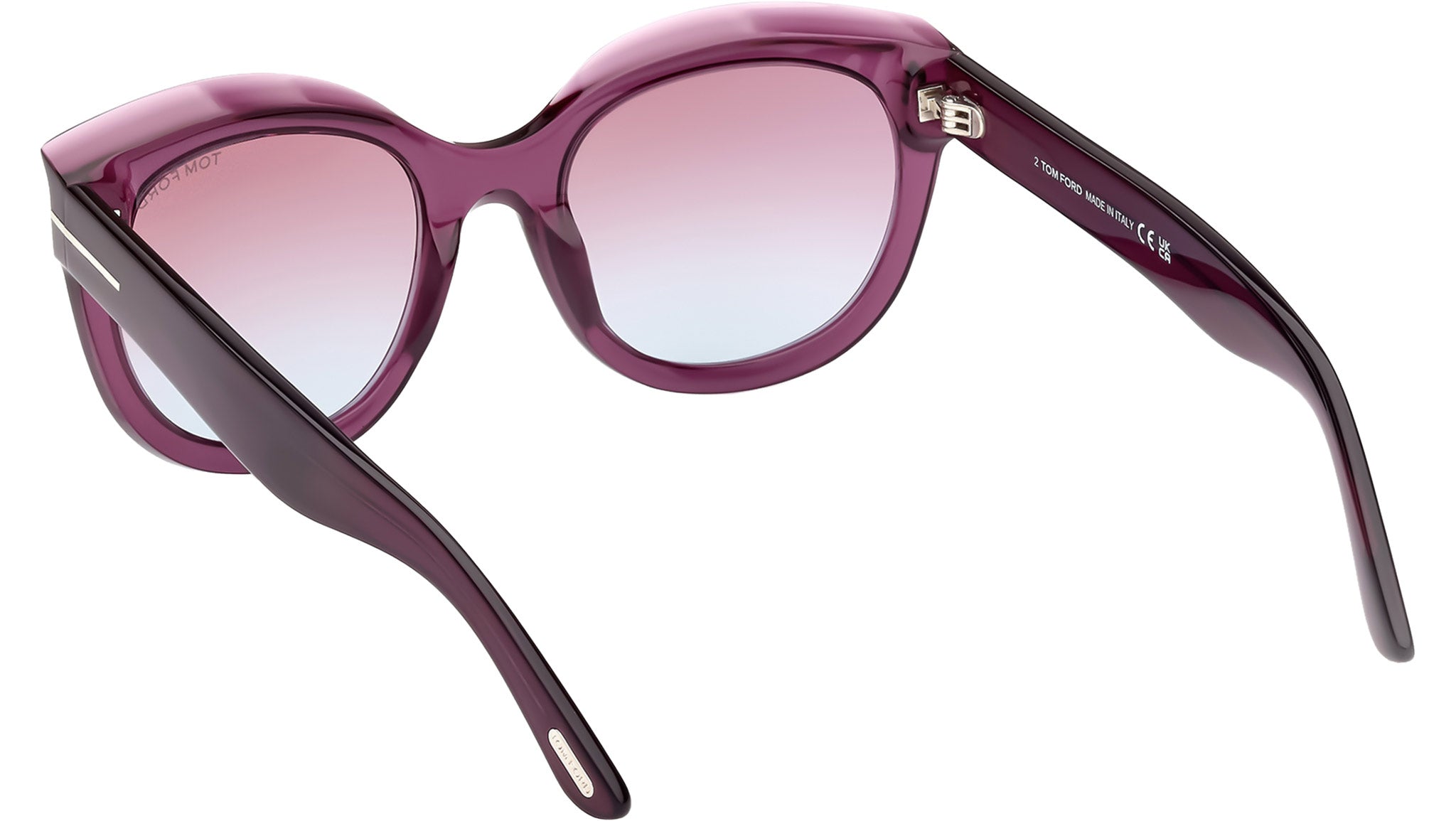 Occhiali da sole Tom Ford donna modello Tamara-02 FT1114 in acetato lilla lucido con lenti color viola sfumato a specchio. Codice brand: 1114. Codice colore: 80Z. Rivenditore autorizzato Tom Ford online. Gli occhiali vengono consegnati con custodia e accessori originali e sono coperti da garanzia standard di 12 mesi del produttore.