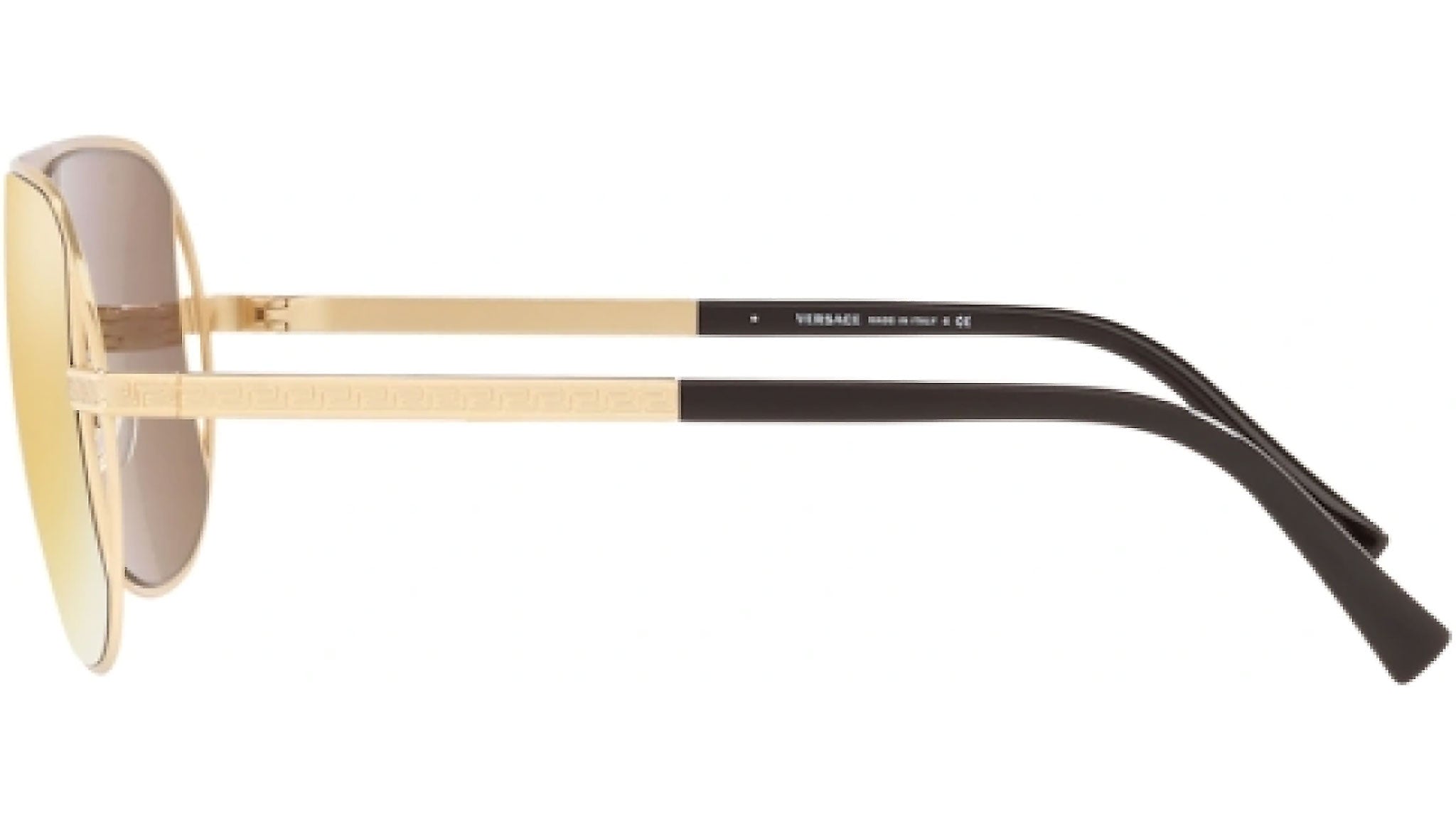 Occhiali da sole Versace modello VE2212 codice colore 10027P, variante colore oro con lenti color oro a specchio marrone. Dedicata a chi desidera uno stile contemporaneo, sexy, sofisticato e dalla forte personalità, Versace è una delle case di alta moda e lusso più iconiche e famose al mondo. La collezione da sole combina innovazione tecnica e stile essenziale del brand, ed è fortemente caratterizzata dagli elementi decorativi che da sempre contraddistinguono la Maison.
