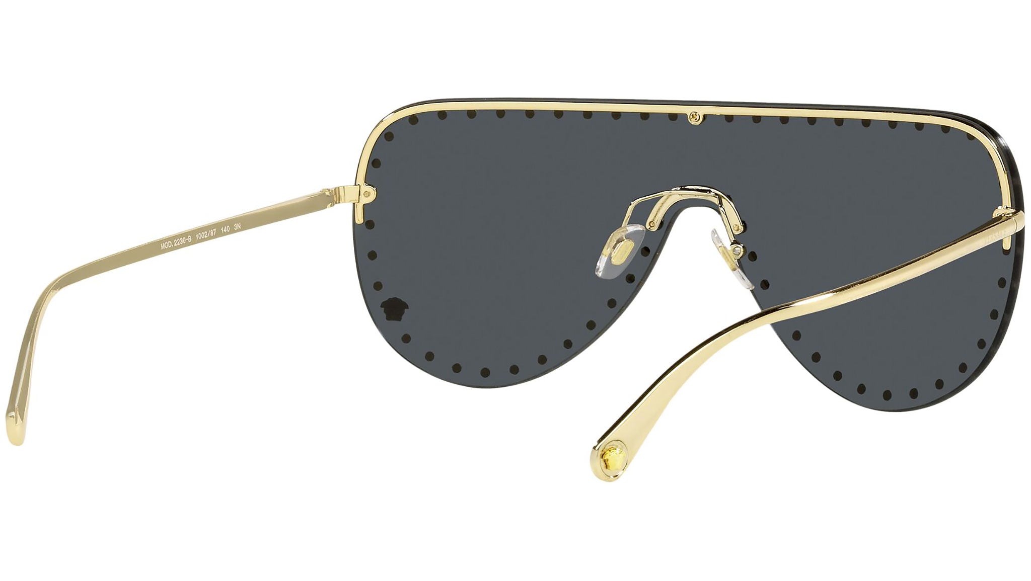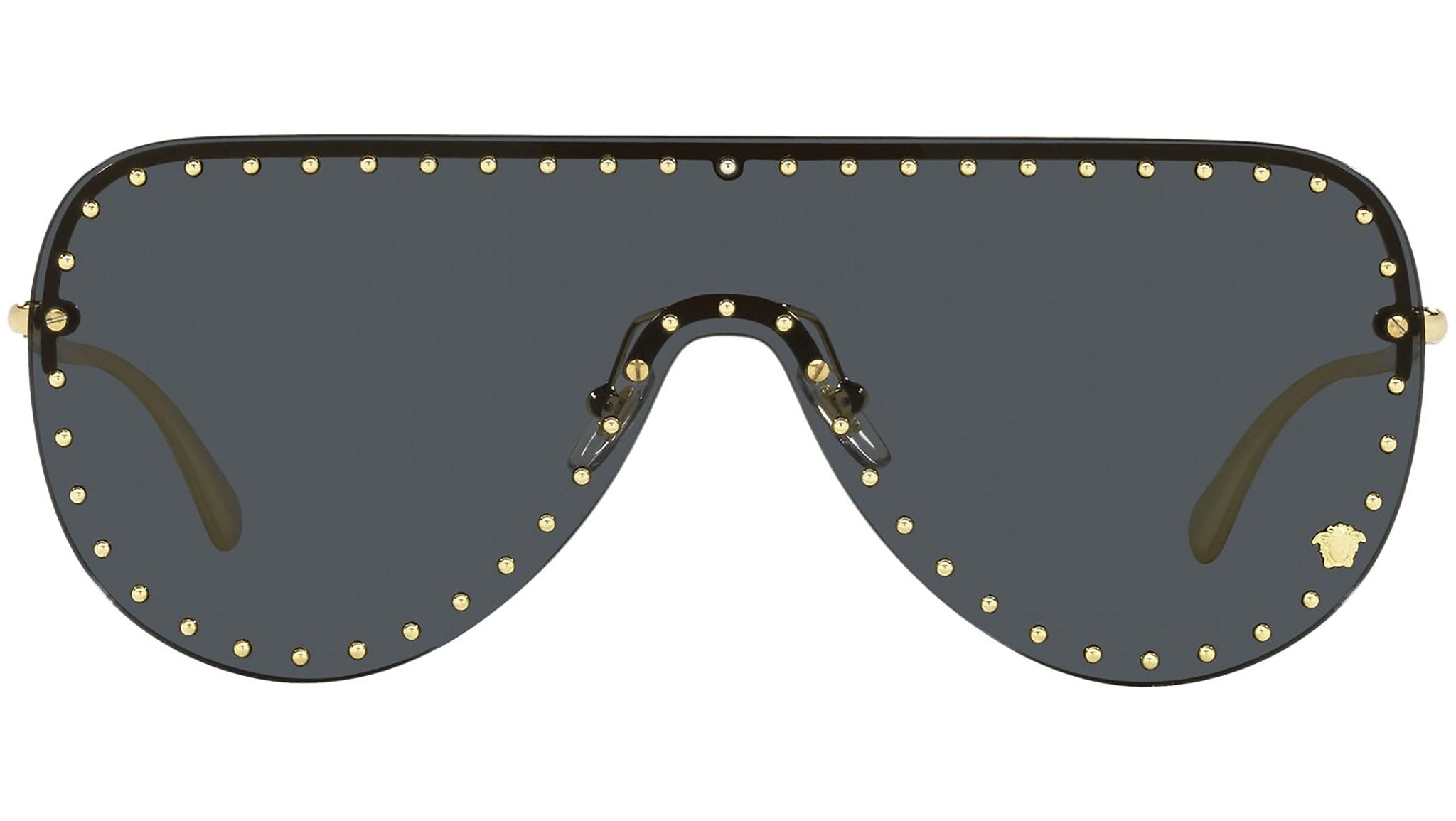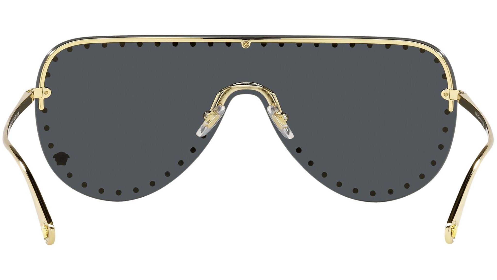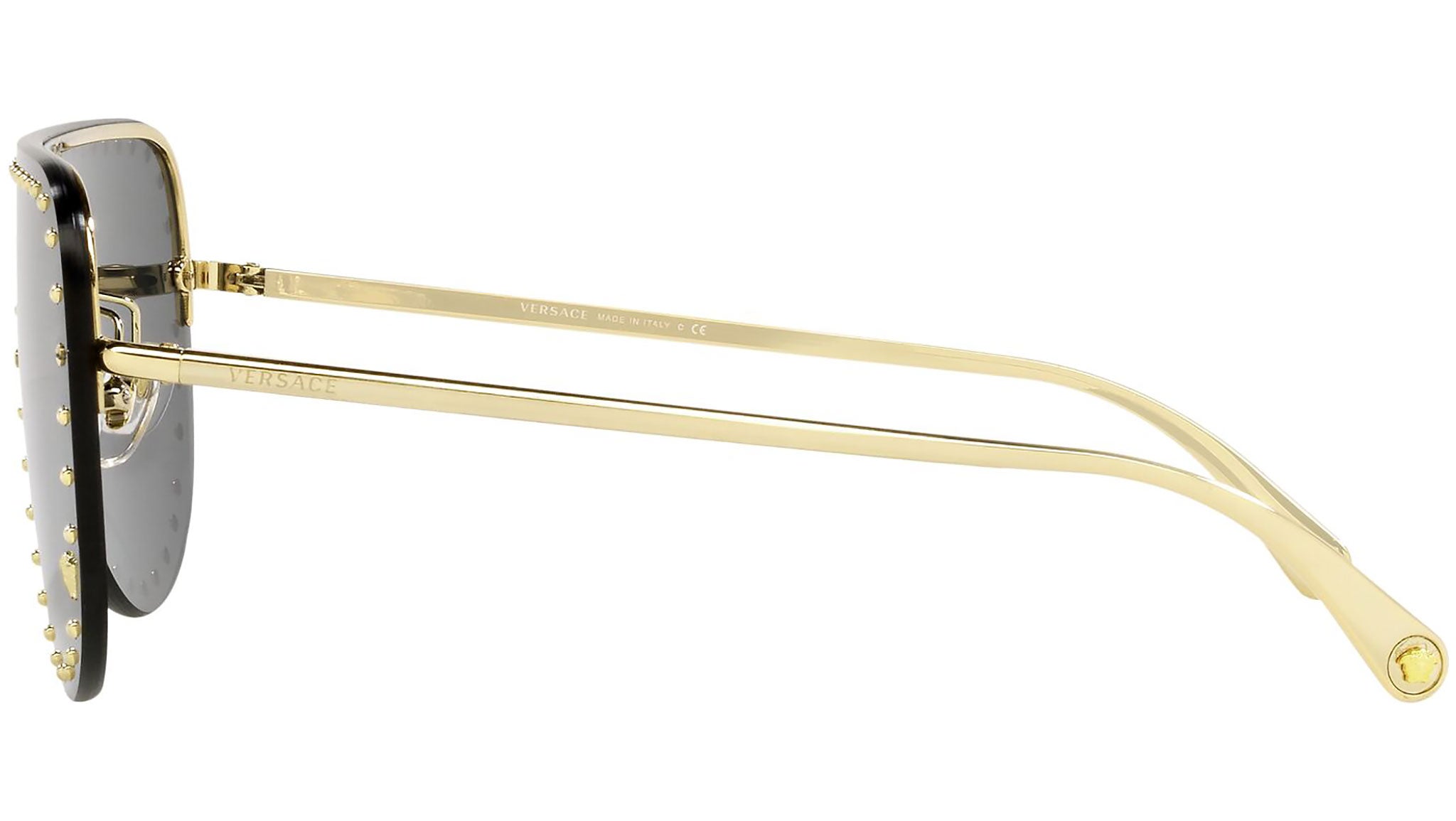 Occhiali da sole Versace modello VE2230B codice colore 100287, variante colore oro con lenti color grigio scuro. Dedicata a chi desidera uno stile contemporaneo, sexy, sofisticato e dalla forte personalità, Versace è una delle case di alta moda e lusso più iconiche e famose al mondo. La collezione da sole combina innovazione tecnica e stile essenziale del brand, ed è fortemente caratterizzata dagli elementi decorativi che da sempre contraddistinguono la Maison.