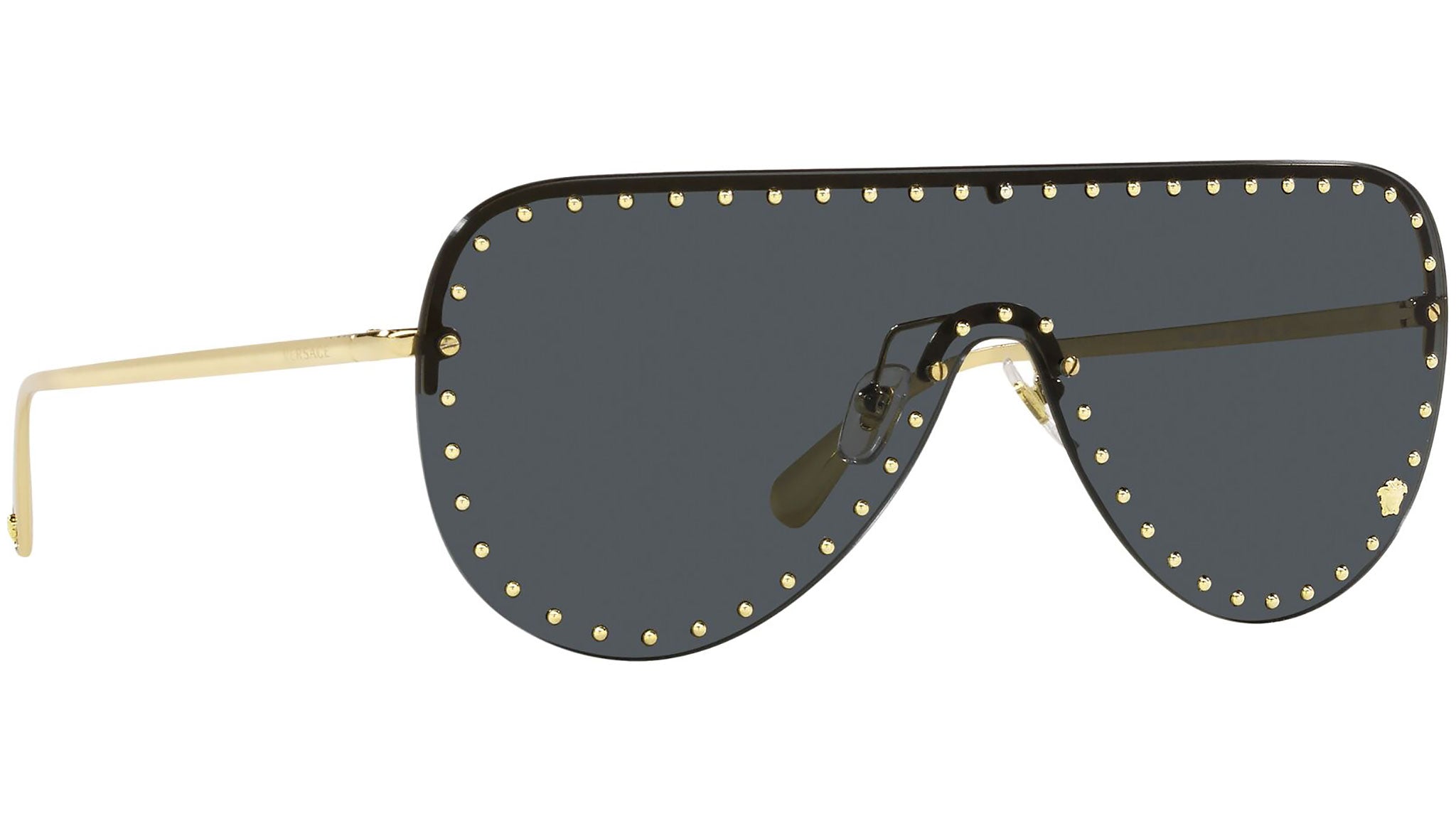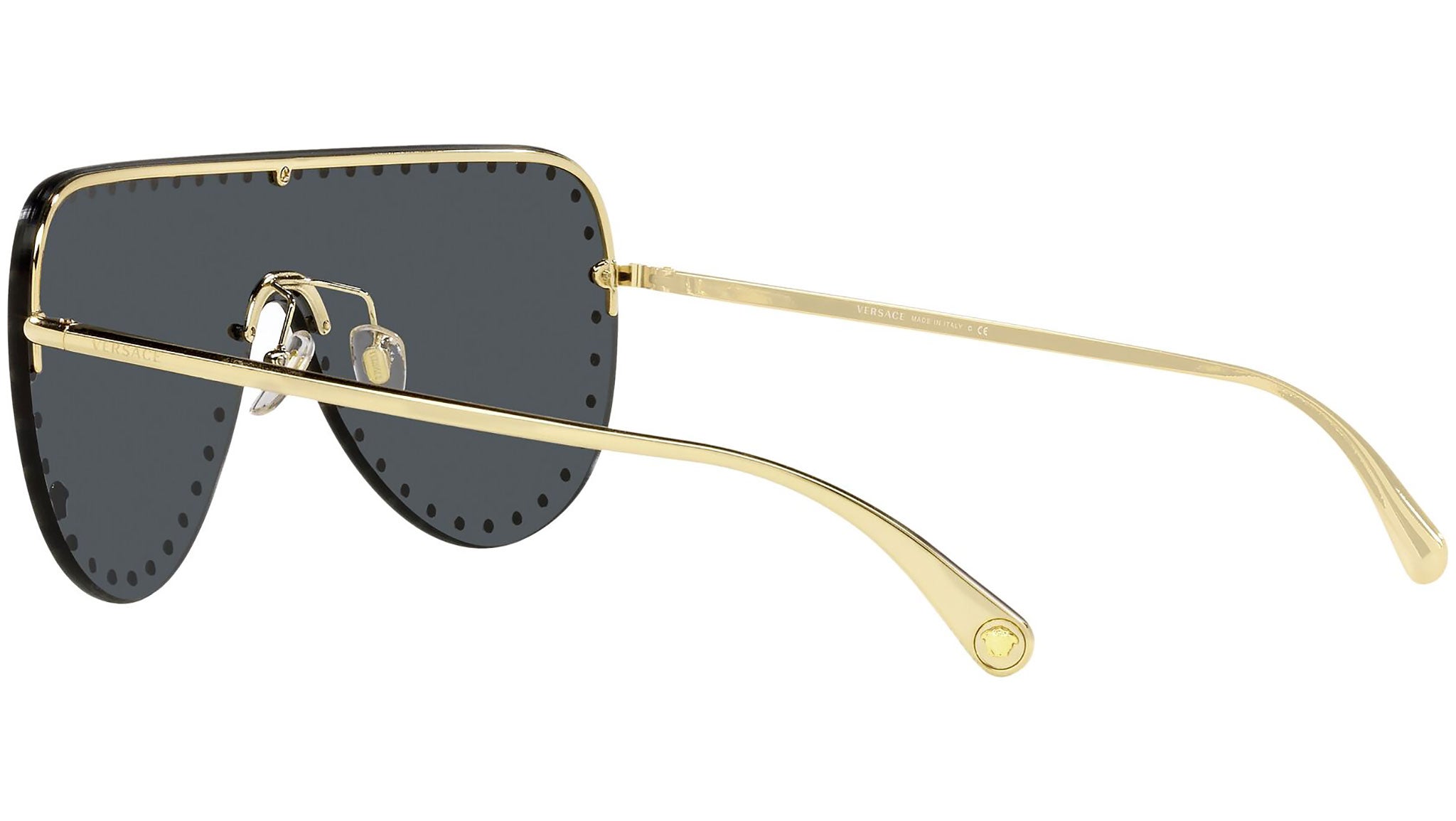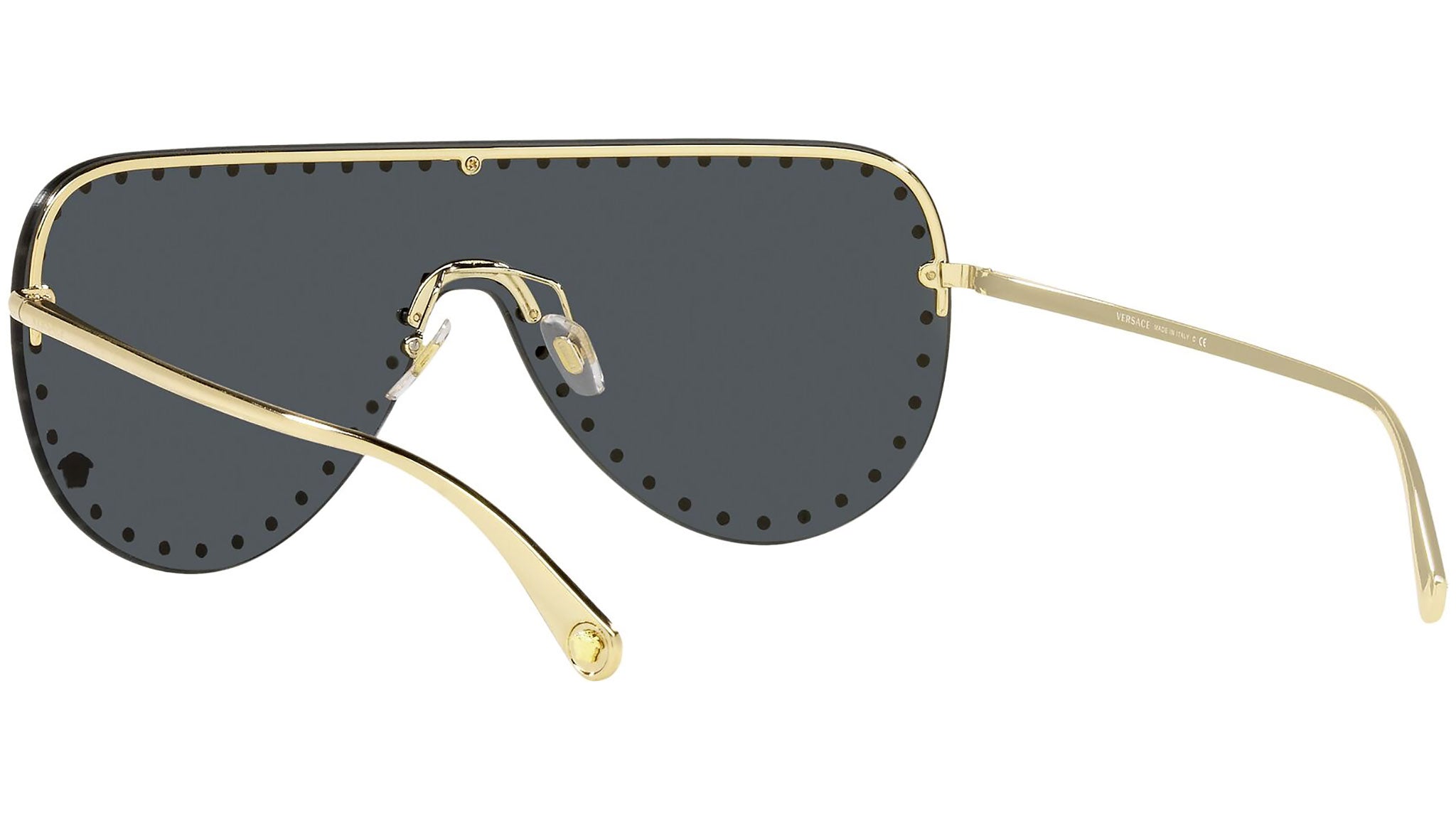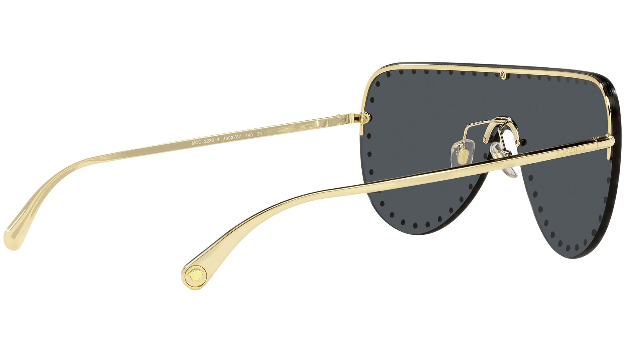 Occhiali da sole Versace modello VE2230B codice colore 100287, variante colore oro con lenti color grigio scuro. Dedicata a chi desidera uno stile contemporaneo, sexy, sofisticato e dalla forte personalità, Versace è una delle case di alta moda e lusso più iconiche e famose al mondo. La collezione da sole combina innovazione tecnica e stile essenziale del brand, ed è fortemente caratterizzata dagli elementi decorativi che da sempre contraddistinguono la Maison.