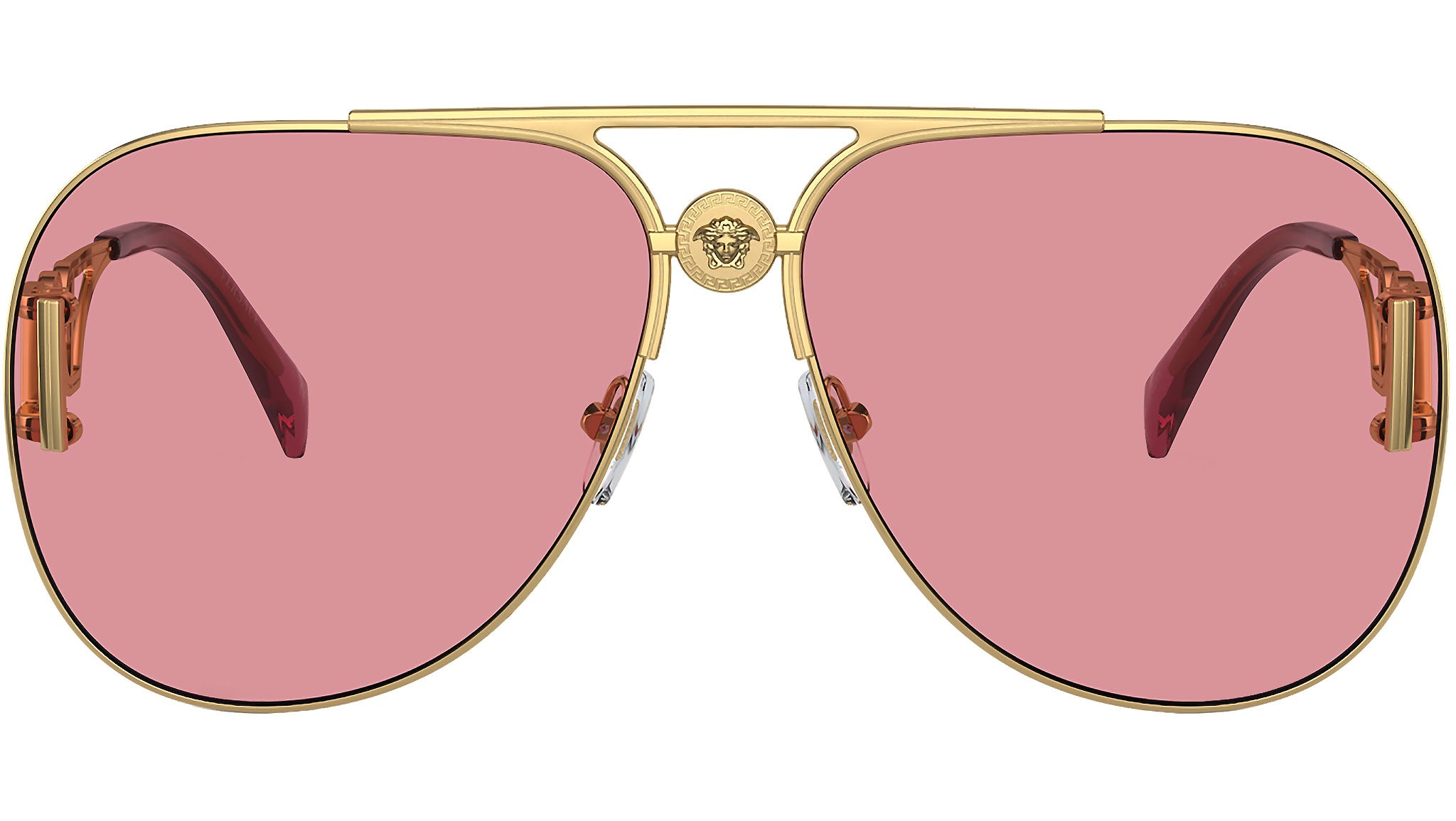Occhiali da sole Versace unisex modello 2255 full rim in metallo color oro con lenti rosa a specchio interno argento base 4. Naselli regolabili. Linea: Iconic. Codice brand: 0VE2255. Codice colore: 1002A4. Rivenditore autorizzato online Versace Eyewear. Ogni prodotto Versace viene consegnato con astuccio originale e accessori ed è coperto da garanzia del produttore di 12 mesi.