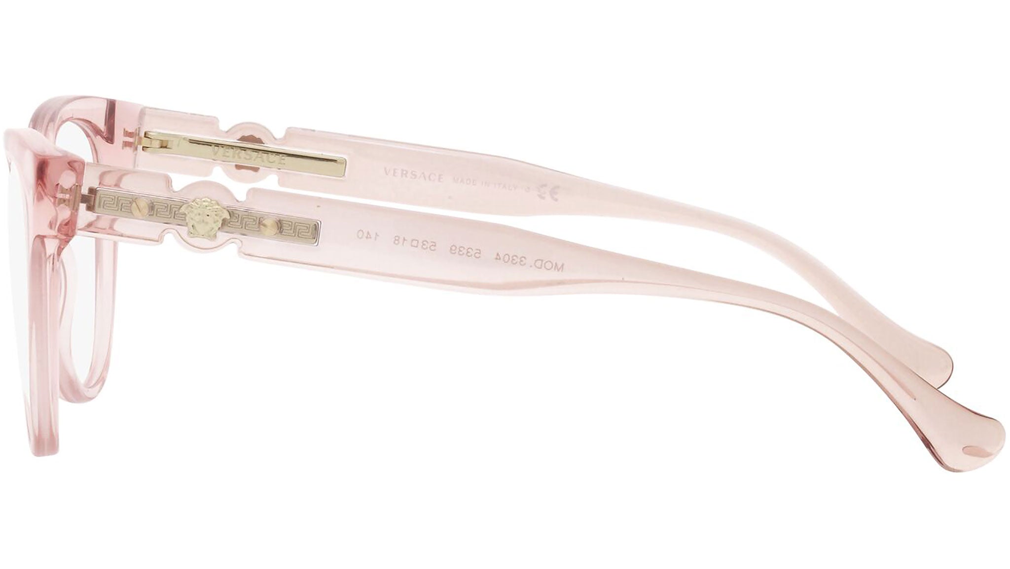 Occhiali da vista Versace modello VE3304 variante colore 5339 rosa trasparente. Dedicata a chi desidera uno stile contemporaneo, sexy, sofisticato e dalla forte personalità, Versace è una delle case di alta moda e lusso più iconiche e famose al mondo. La collezione eyewear combina innovazione tecnica e stile essenziale del brand, ed è fortemente caratterizzata dagli elementi decorativi che da sempre contraddistinguono la Maison.
