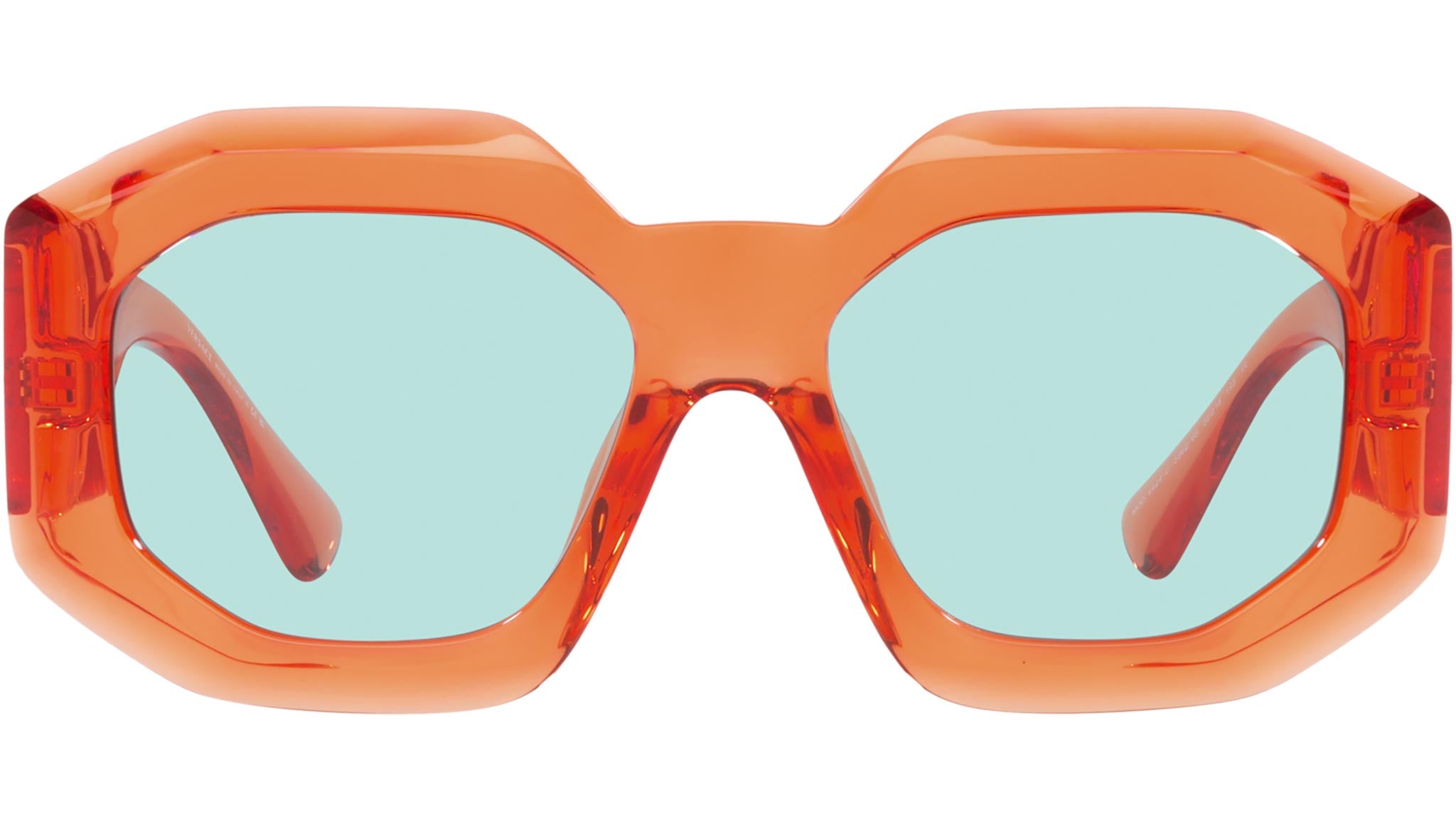 Occhiali da sole Versace modello VE4424U codice colore 536265 arancione trasparente con lenti color azzurro chiaro. Dedicata a chi desidera uno stile contemporaneo, sexy, sofisticato e dalla forte personalità, Versace è una delle case di alta moda e lusso più iconiche e famose al mondo. La collezione da sole combina innovazione tecnica e stile essenziale del brand, ed è fortemente caratterizzata dagli elementi decorativi che da sempre contraddistinguono la Maison.