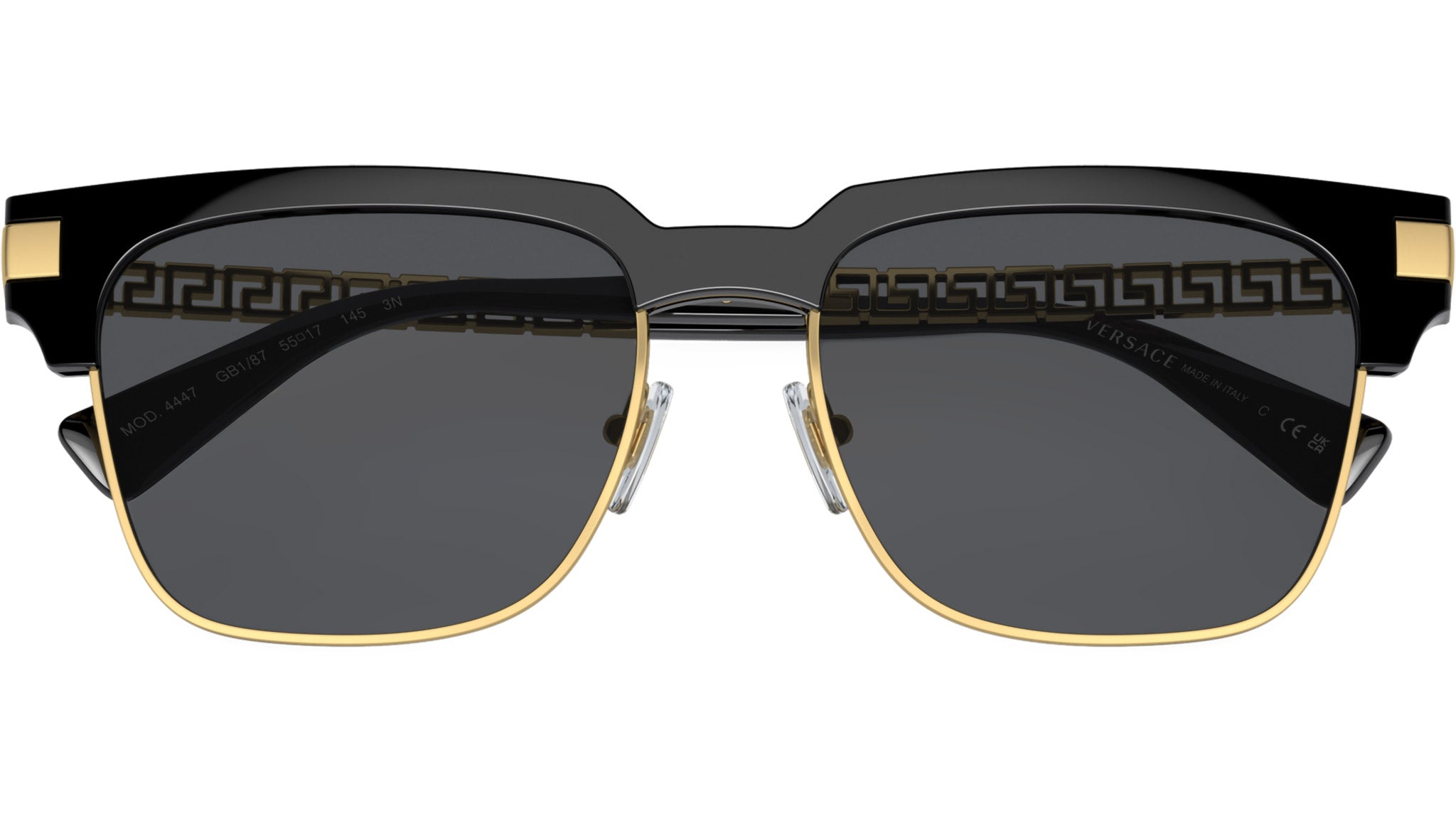 Occhiali da sole Versace uomo modello 4447 full rim in iniettato color nero con lenti grigio scuro base 2. Naselli regolabili. Linea: Daily Heritage. Codice brand: 0VE4447. Codice colore: GB1/87. Rivenditore autorizzato online Versace Eyewear. Ogni prodotto Versace viene consegnato con astuccio originale e accessori ed è coperto da garanzia del produttore di 12 mesi.