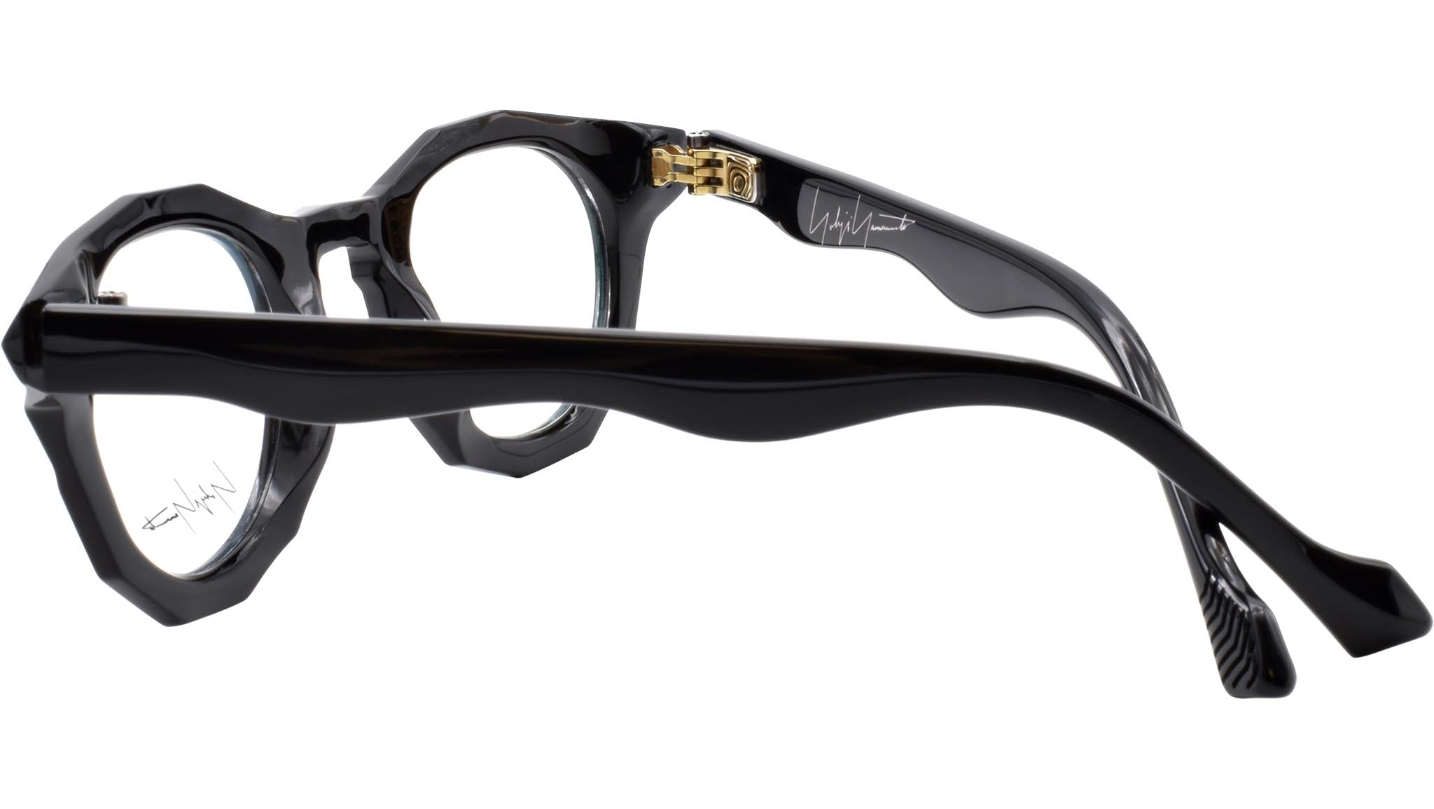 Yohji Yamamoto Eyewear Collection model LOOK 010 color code A001 in pure black / japan gold. With this new collection, Yohji Yamamoto is taking a more experimental direction, inspired by the earliest iterations of the material innovations that achieve styles in robust, dramatic designs and a strong Brand attitude.